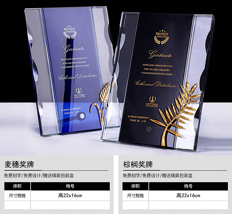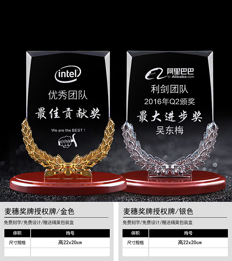 102 / 水晶奖杯奖牌定制刻字 定做授权牌加盟牌毕业留念比赛颁奖纪念品