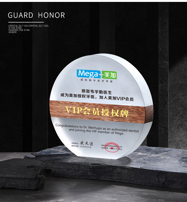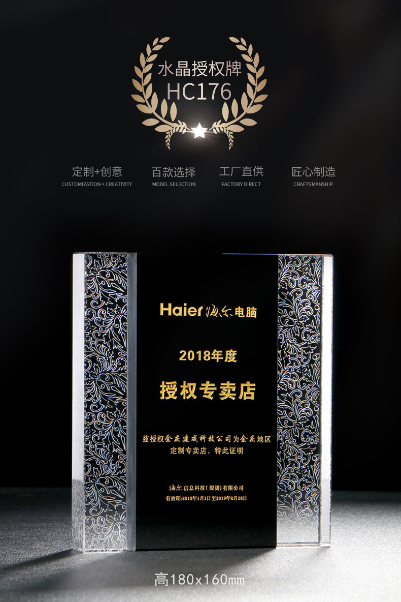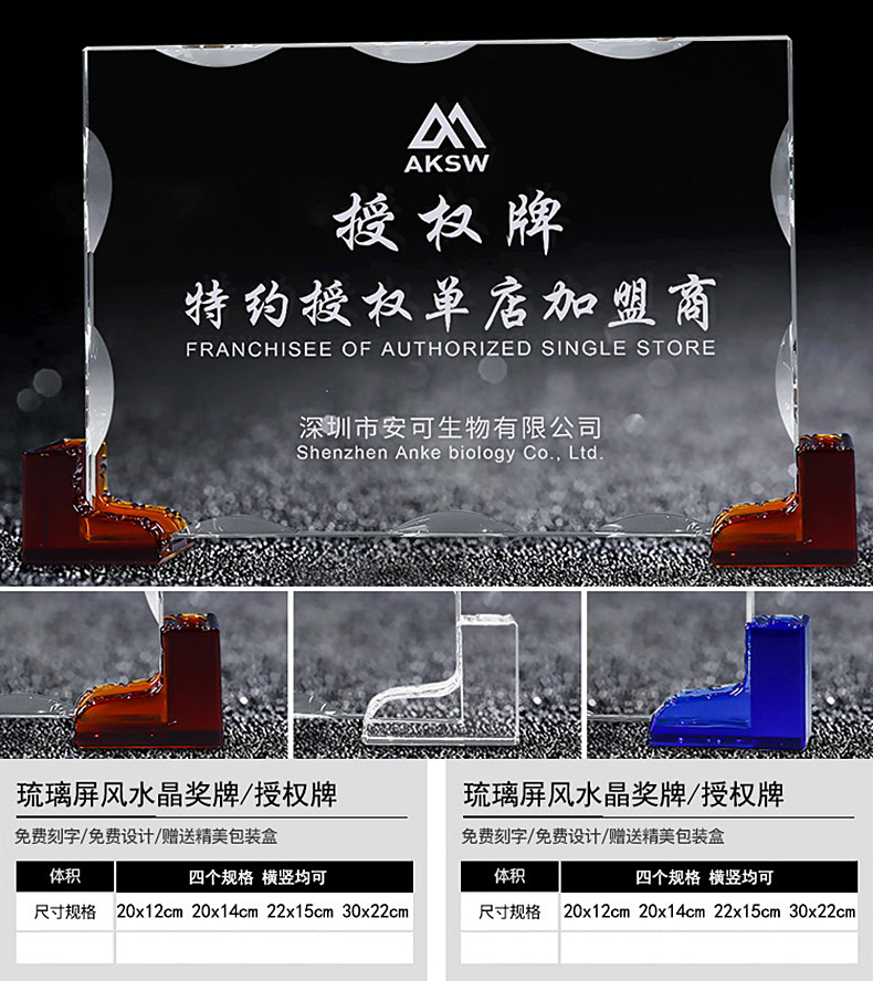 高档水晶授权牌创
