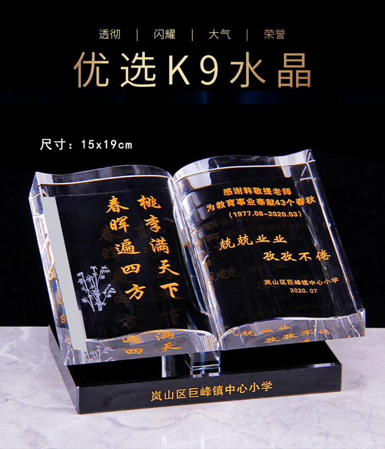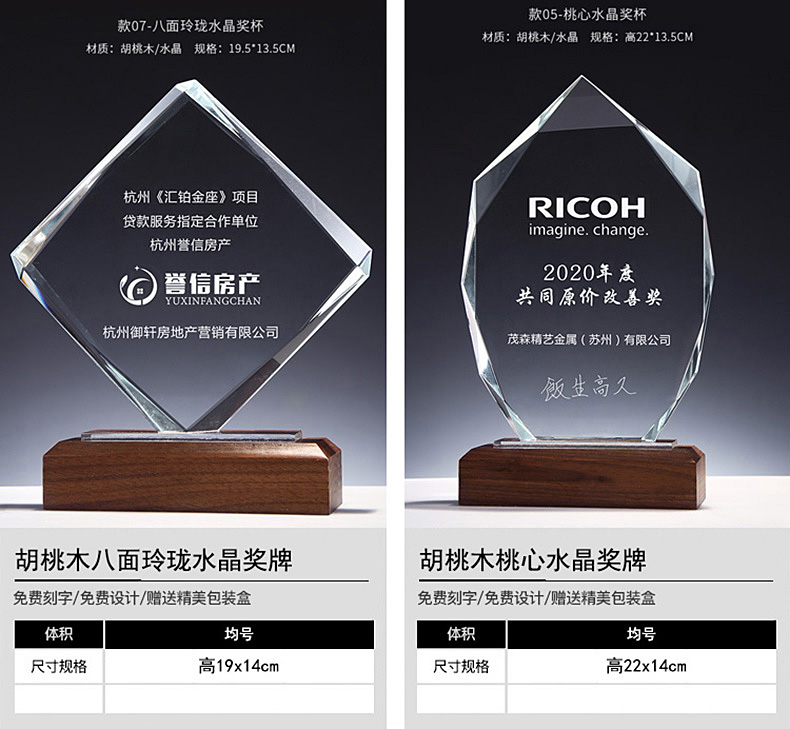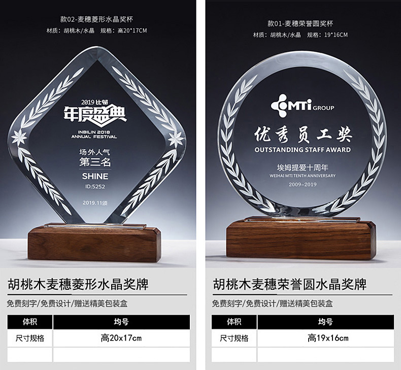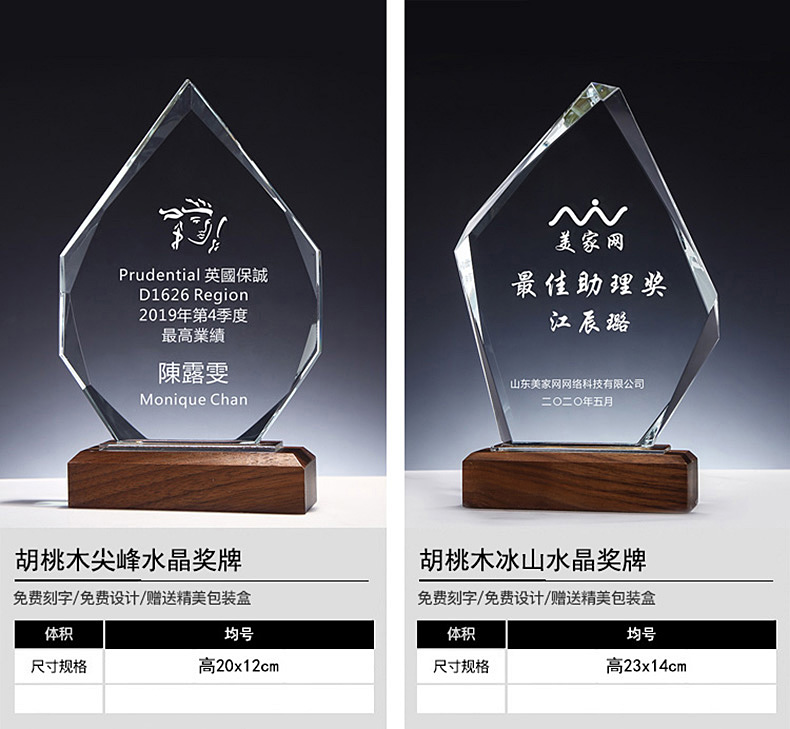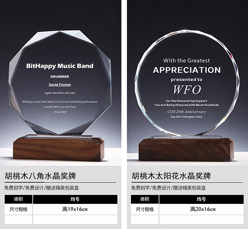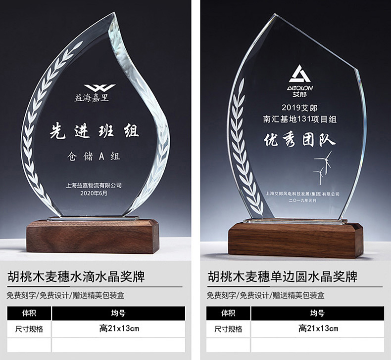 胡桃木实木水晶奖
