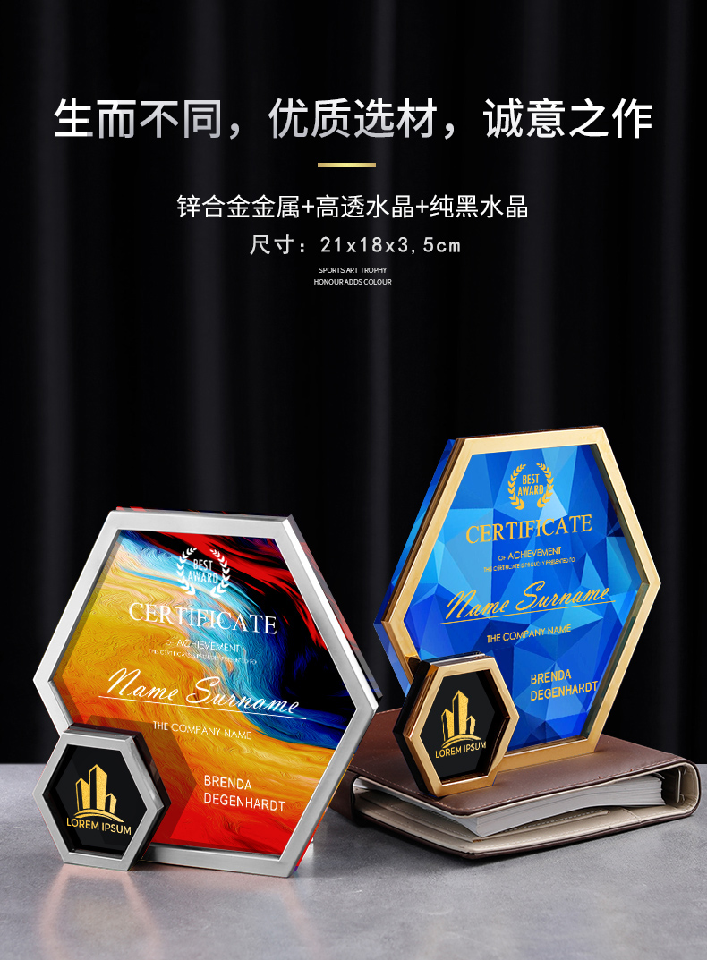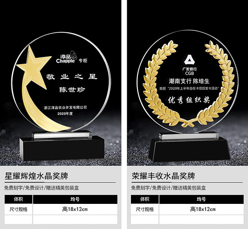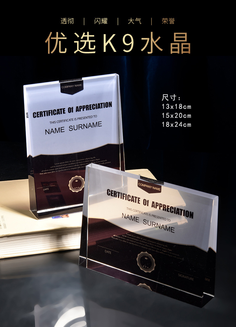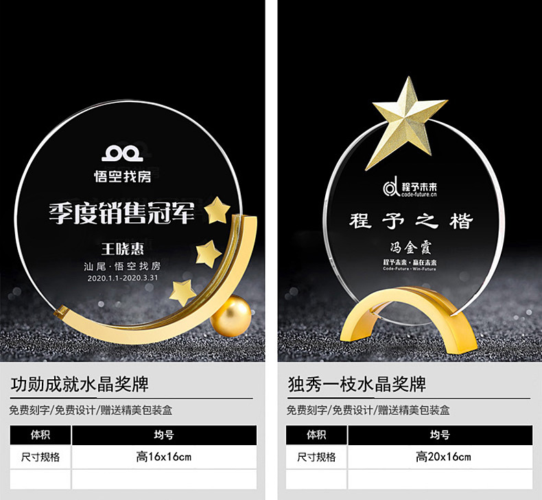 水晶挂牌奖牌