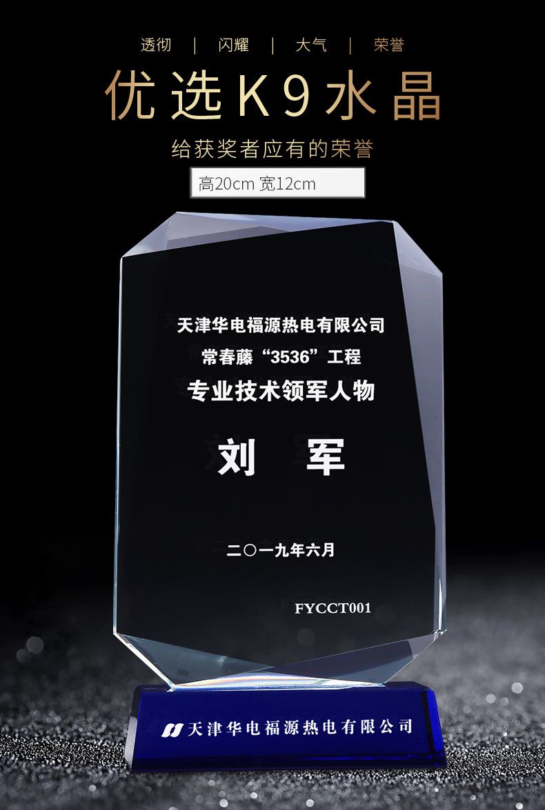 新款树脂水晶奖杯