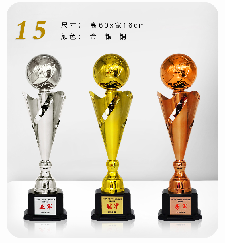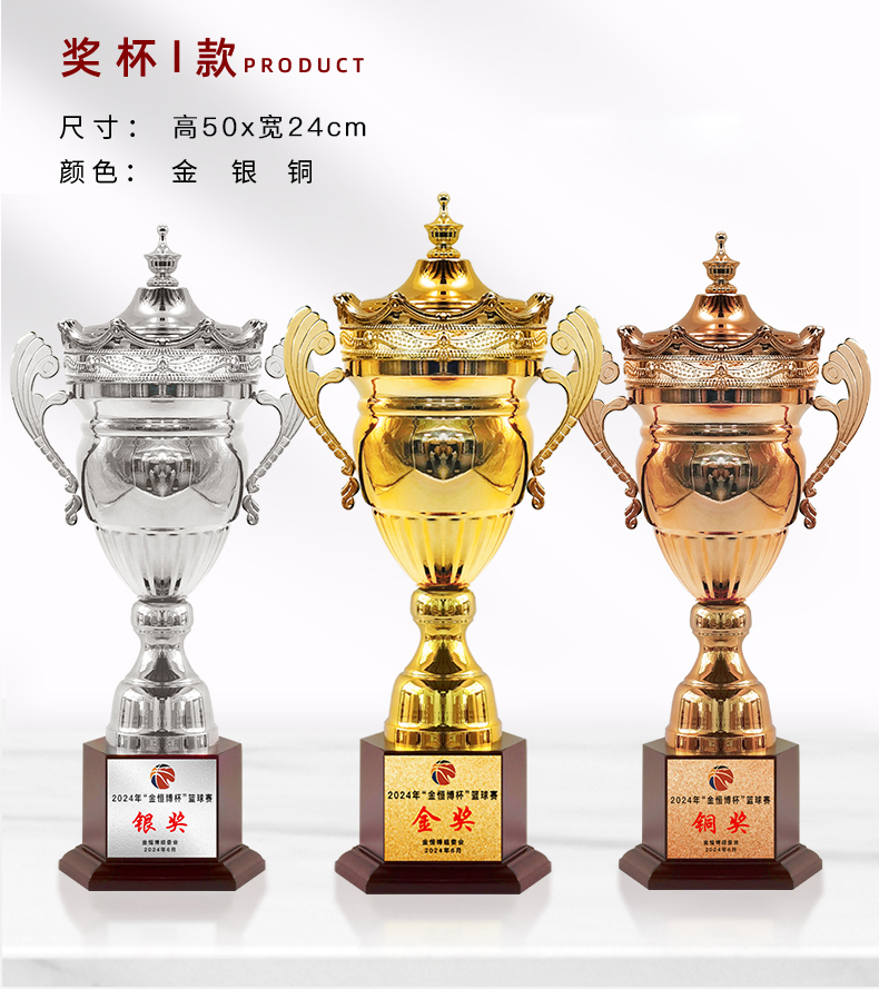 484 / 彩虹金属大奖杯定制定做运动比赛冠亚季军颁奖金银铜足球篮球荣誉订制