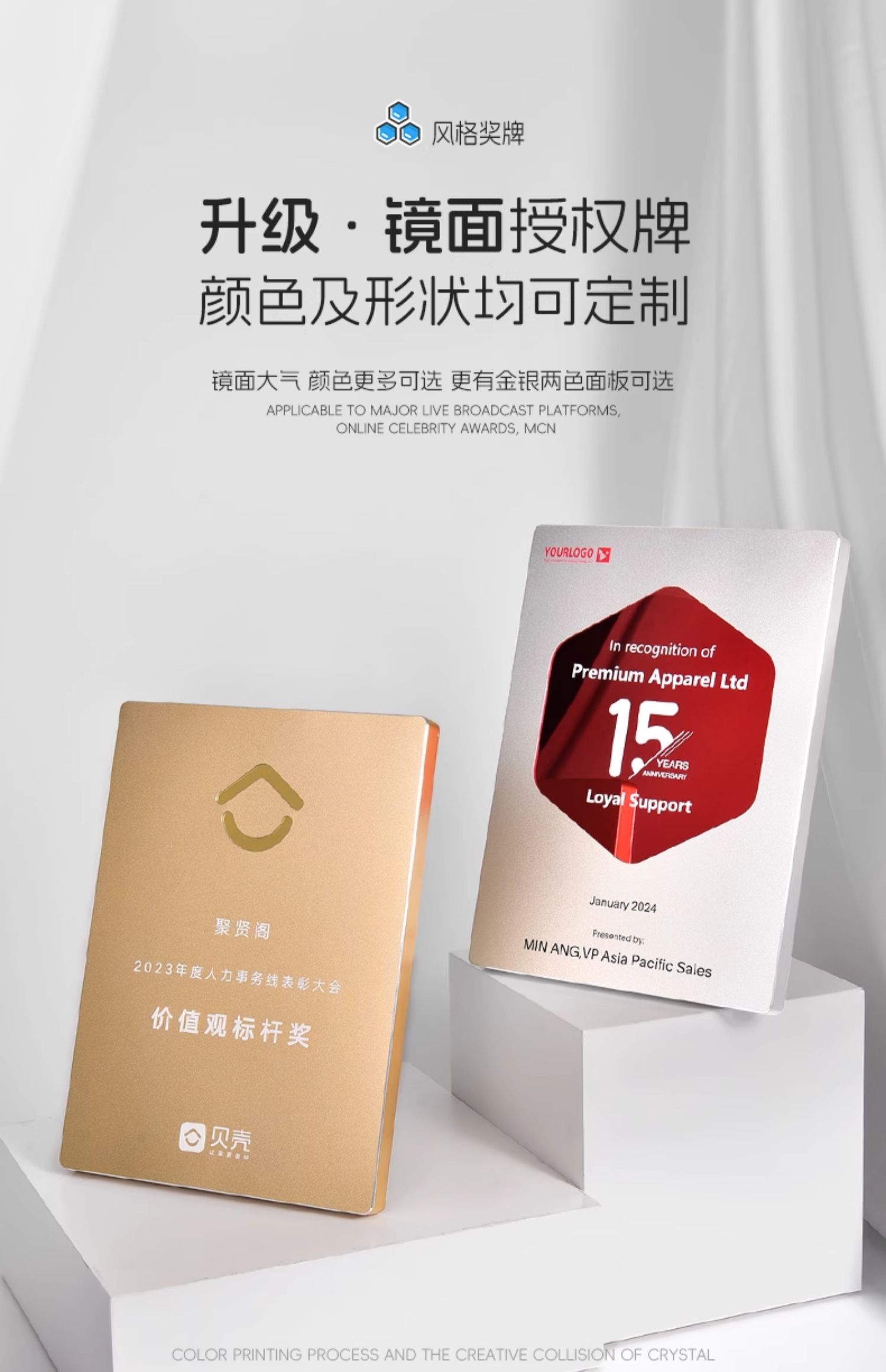 水晶奖杯定制彩印