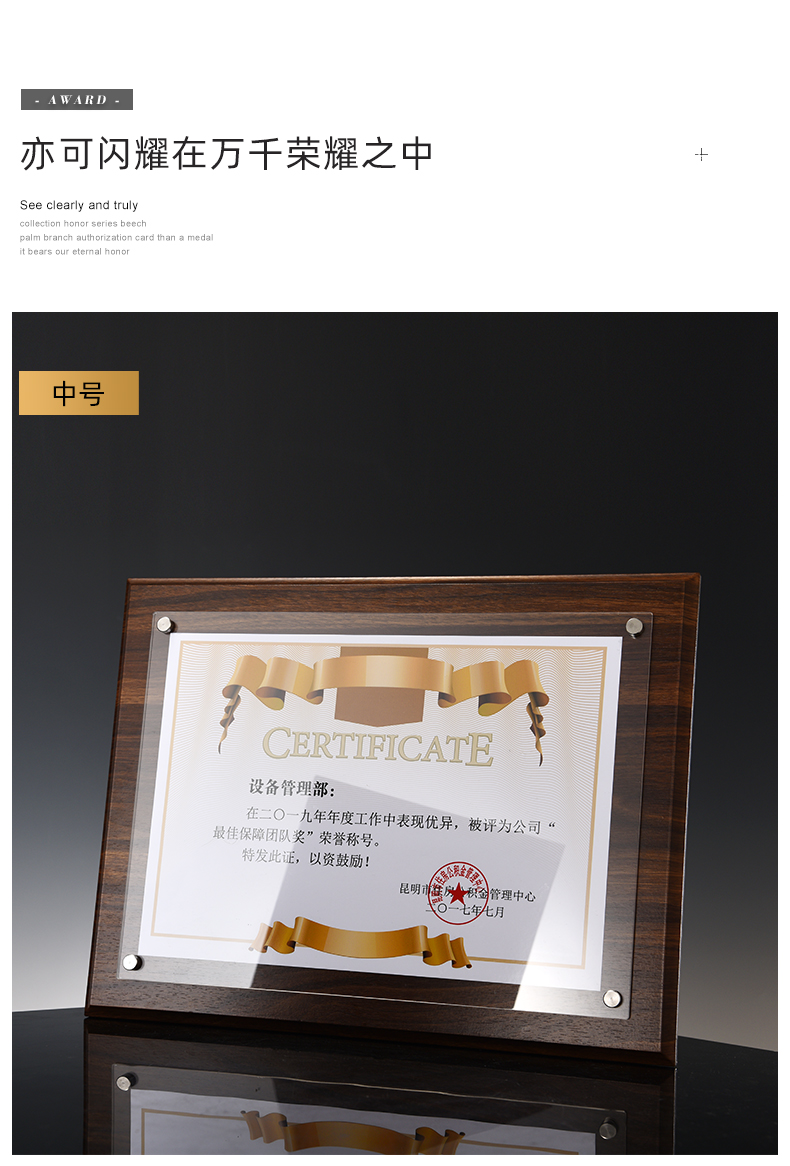 【实木相框】荣誉