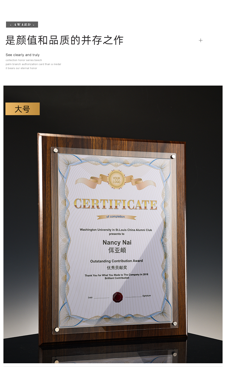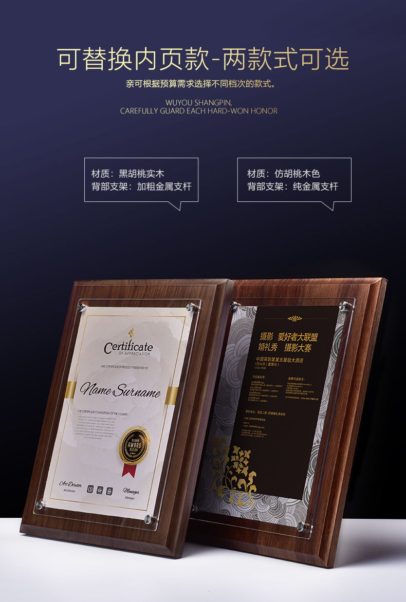 奖章实木相框款2
