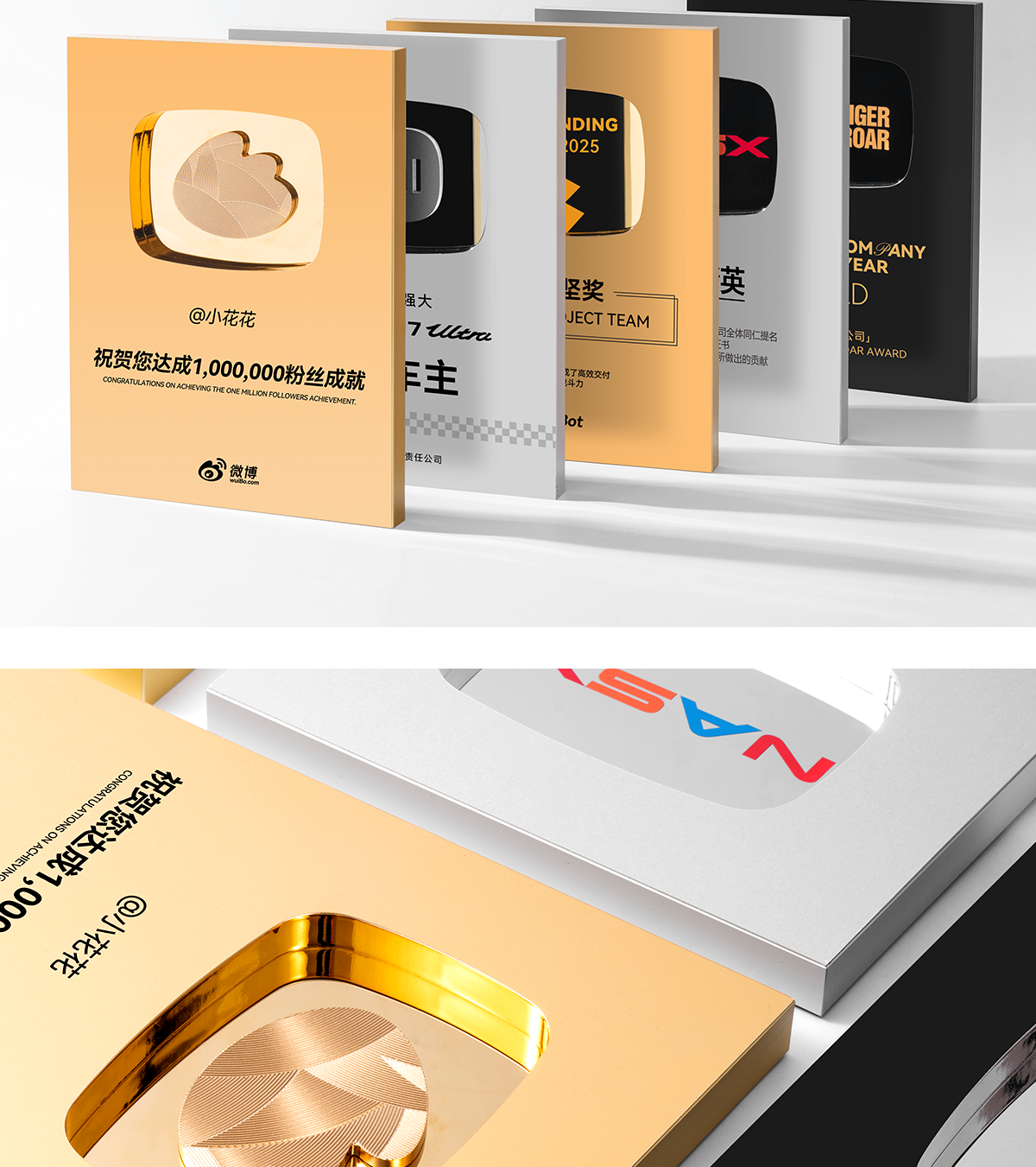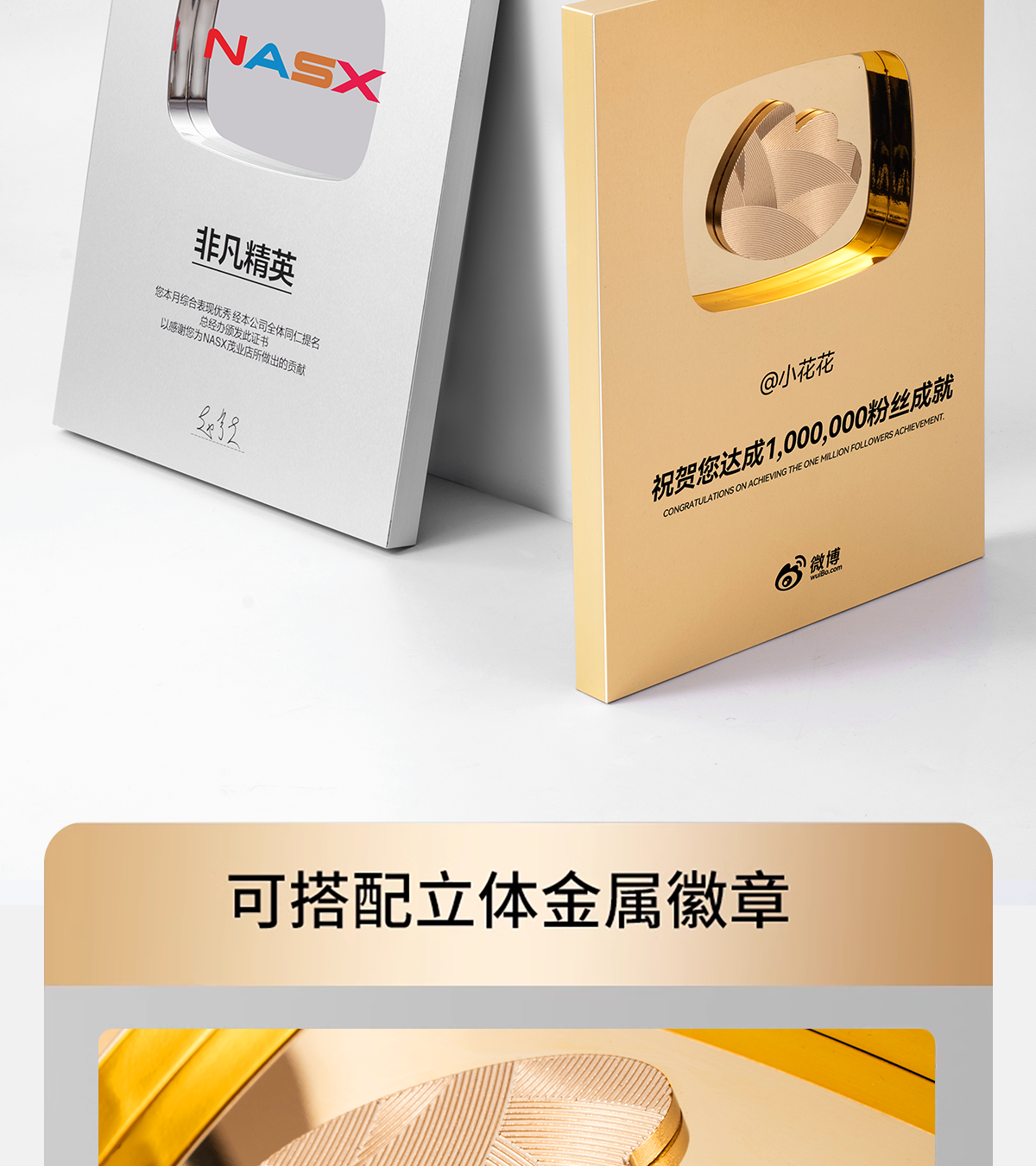 577 / 奖牌定制定做哔哩哔哩b站创意荣誉百万粉丝金属铜牌经销授权牌匾