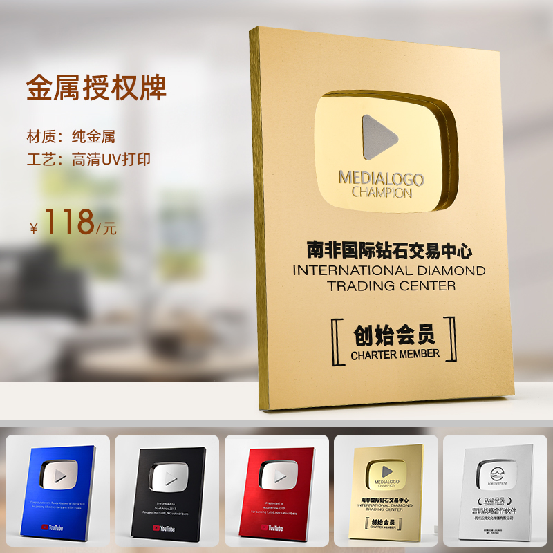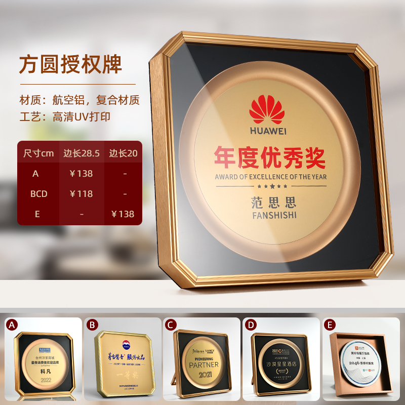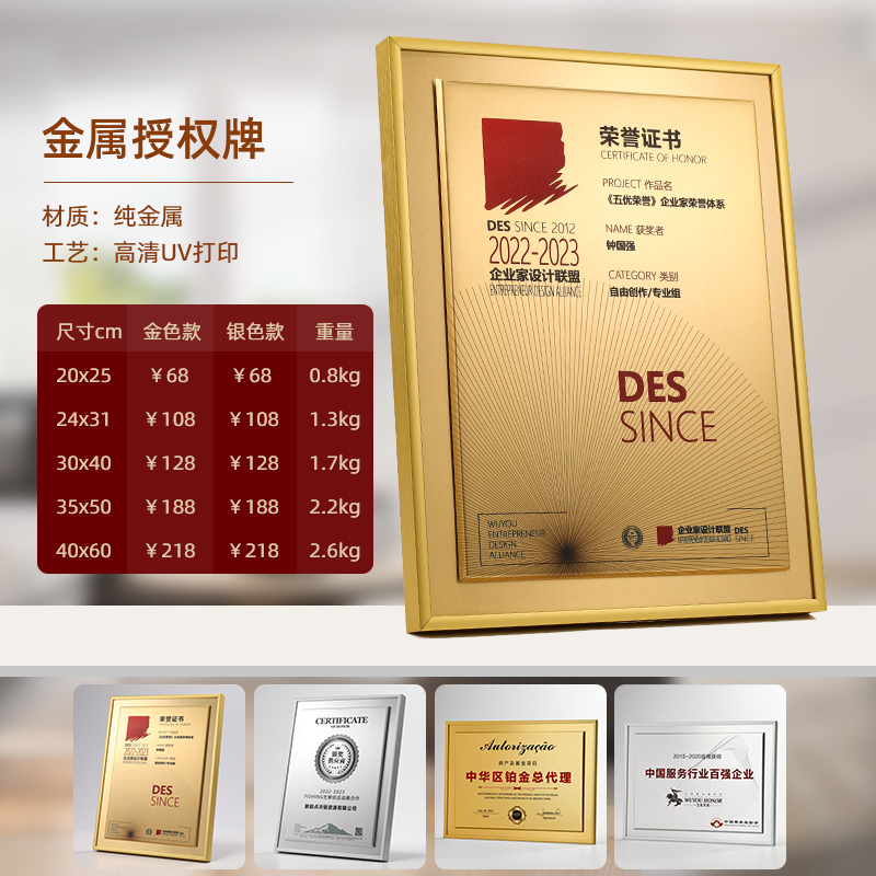 71 / 高档金属奖牌定制订做加盟代理授权牌荣誉牌聘书颁奖杯经销商纪念