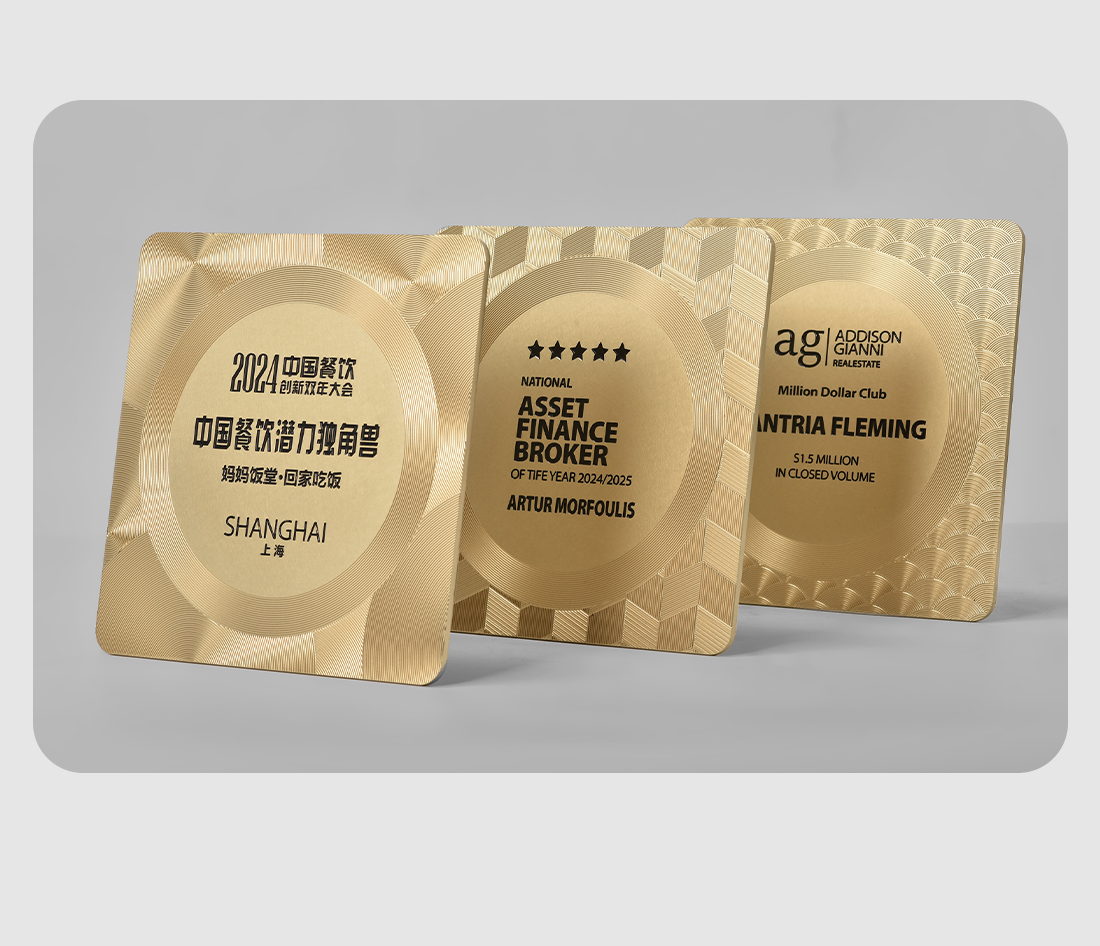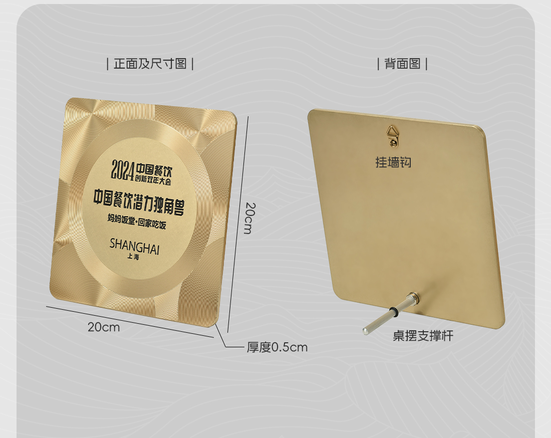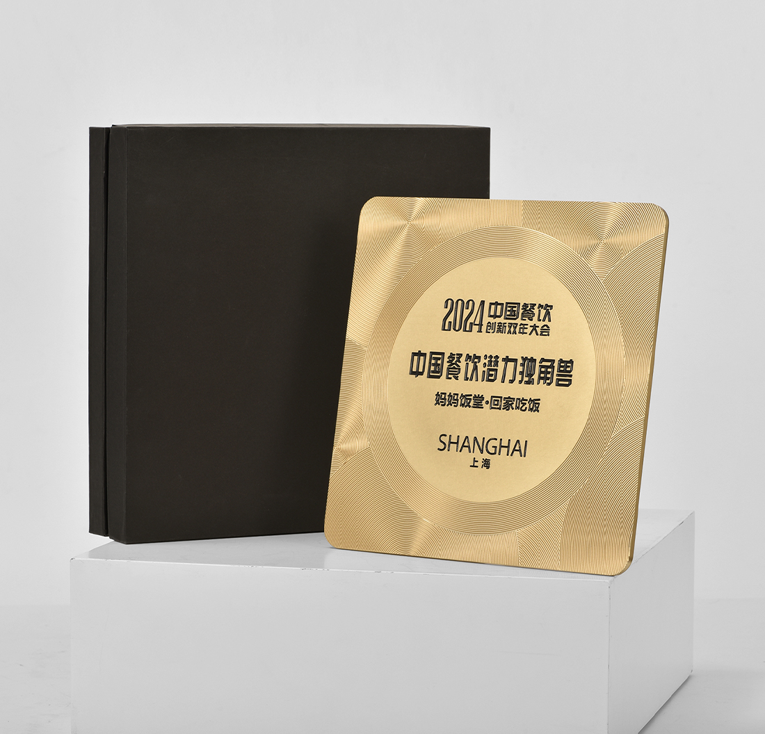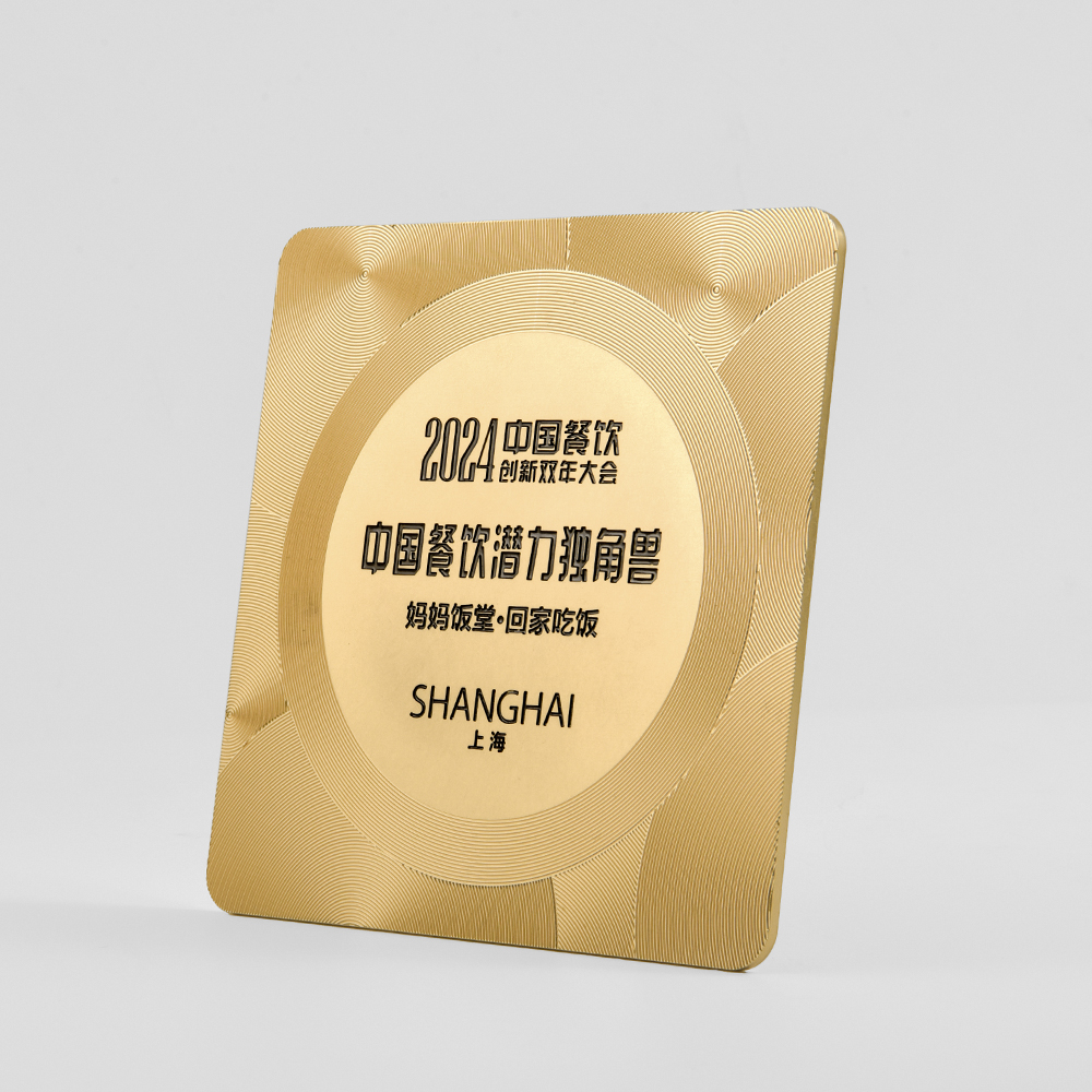 584 / 【金属浮雕奖牌】定制订做授权牌方圆饮酒店美食评选荣誉牌匾证书聘书