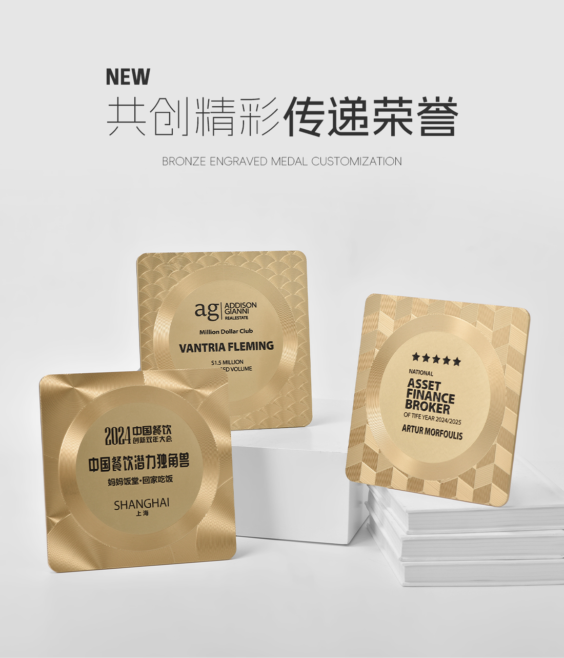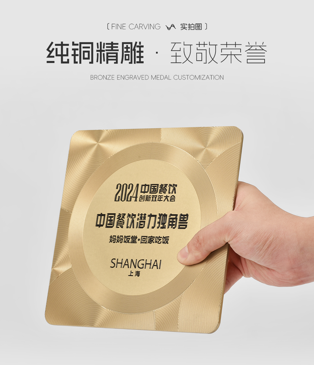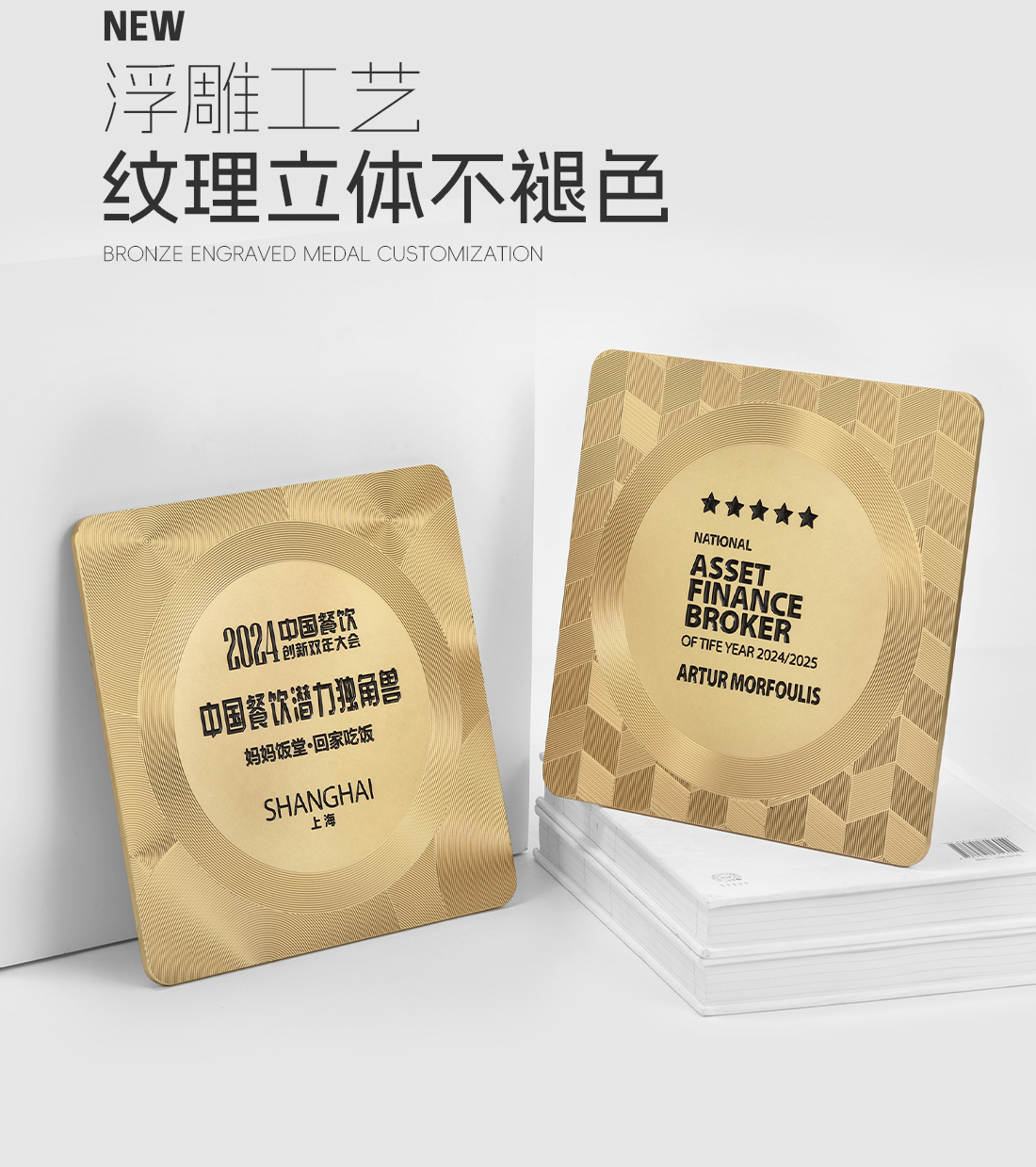 584 / 【金属浮雕奖牌】定制订做授权牌方圆饮酒店美食评选荣誉牌匾证书聘书