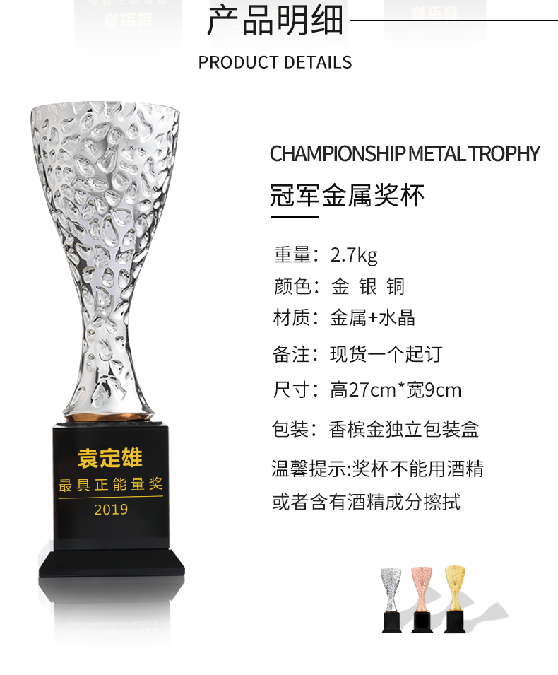 1012 / 【金属奖杯】定制定做大号冠军水晶奖杯高档优秀员工奖杯颁奖奖品制作