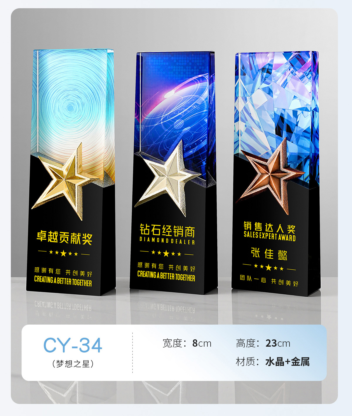 新款金属水晶奖杯