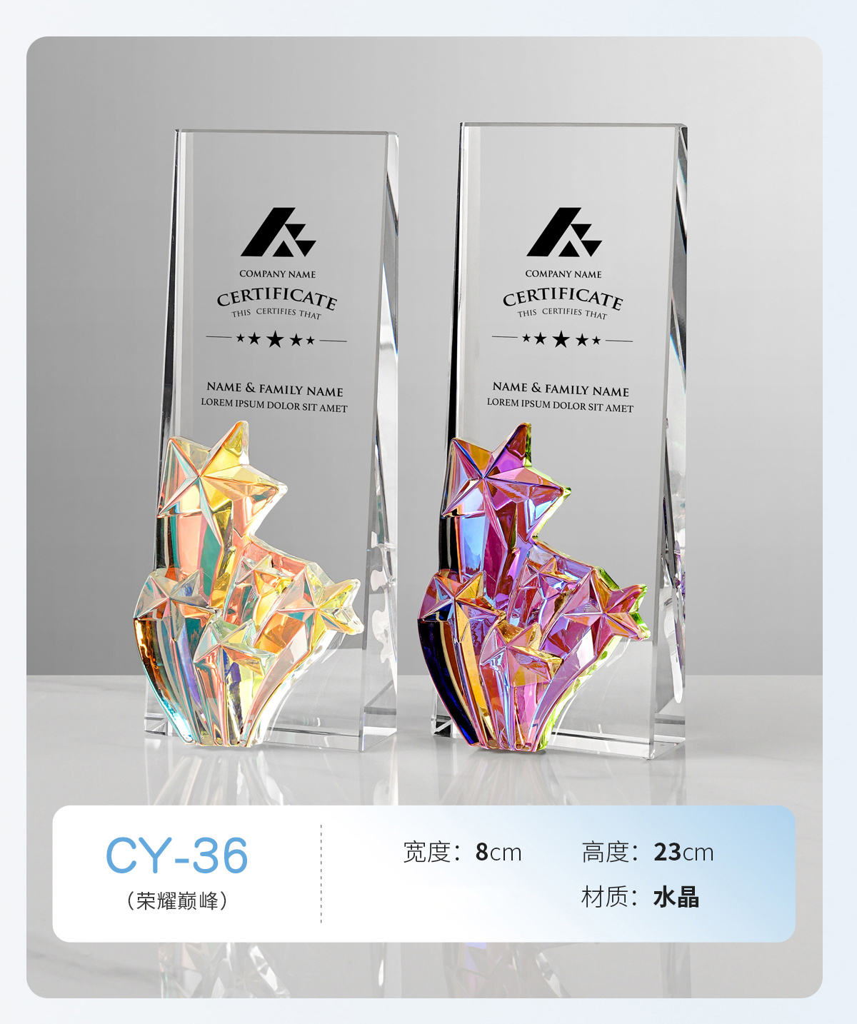 炫彩色彩印水晶奖
