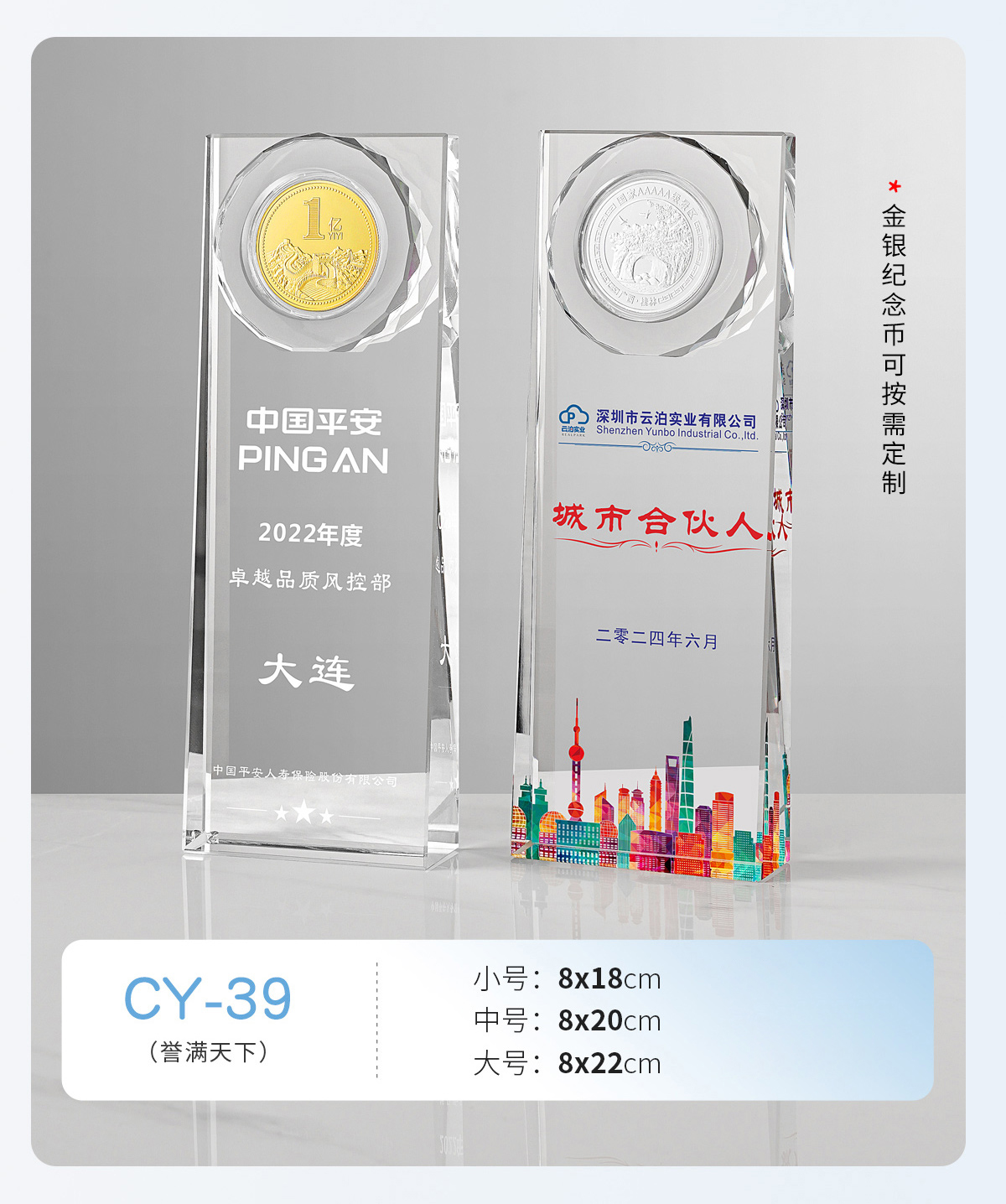 水晶奖牌定制金属