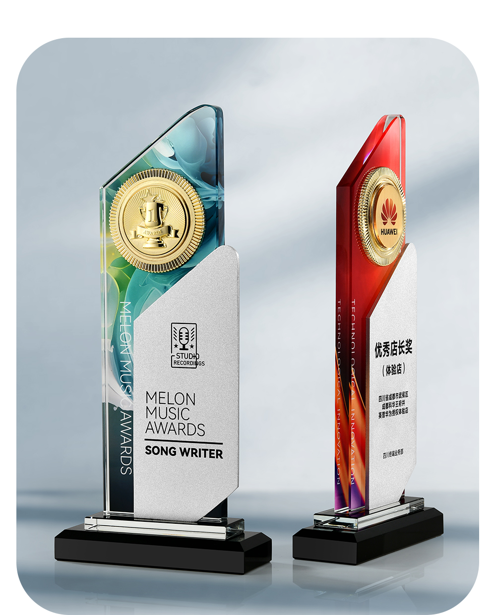 【大理石水晶奖牌