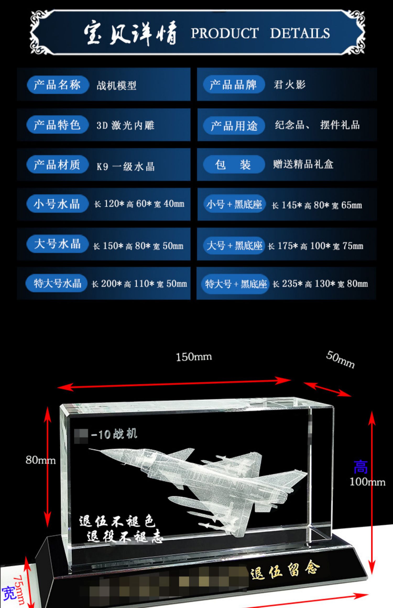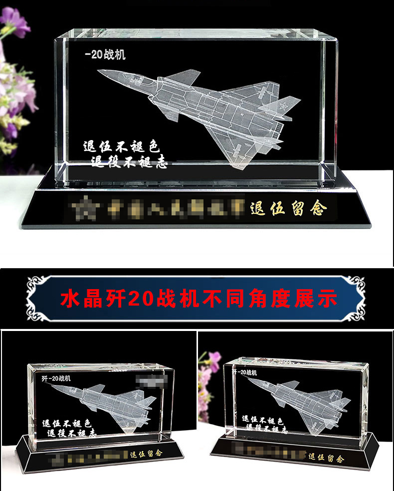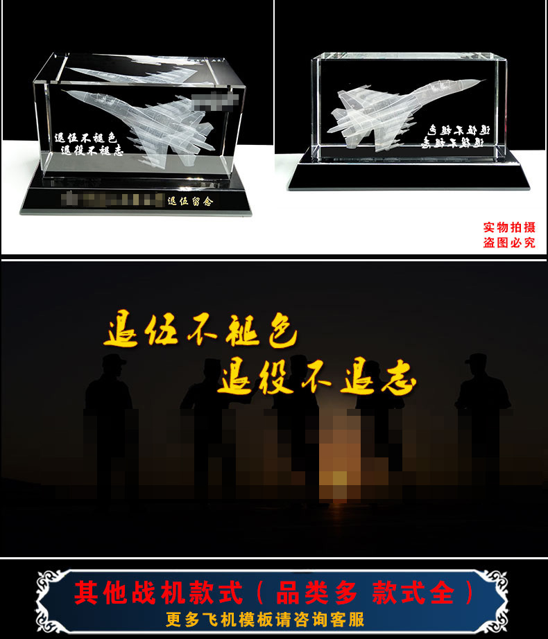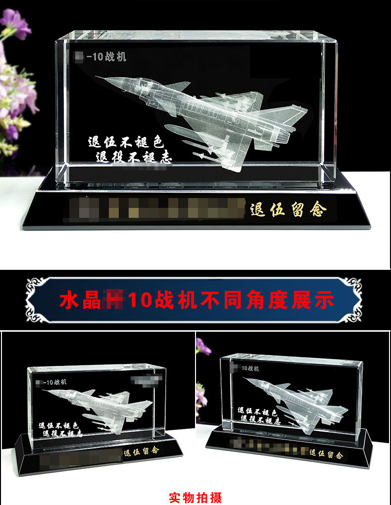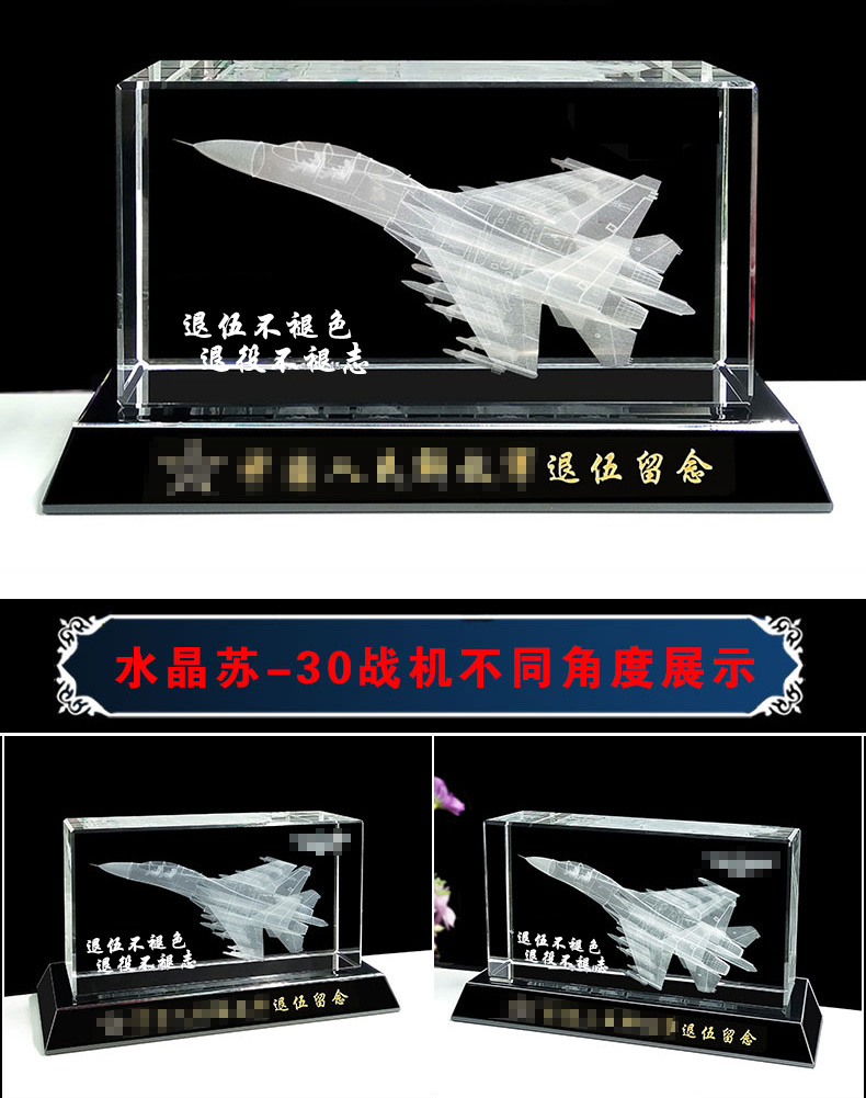 905 / 【水晶飞机模型】水晶内雕直升机飞机模型摆件老兵退伍军人纪念礼品定制送战友班长
