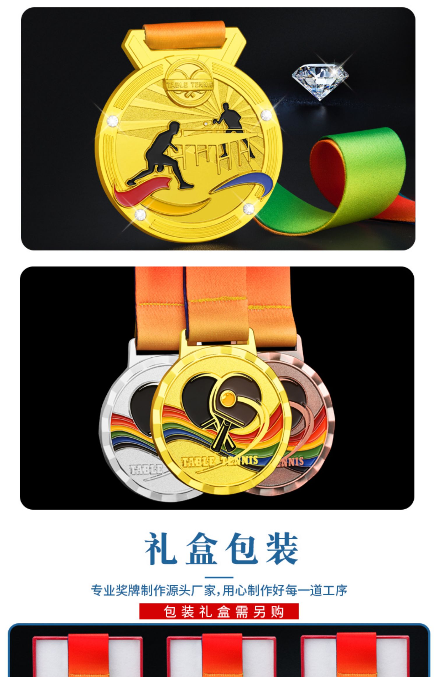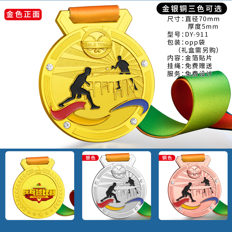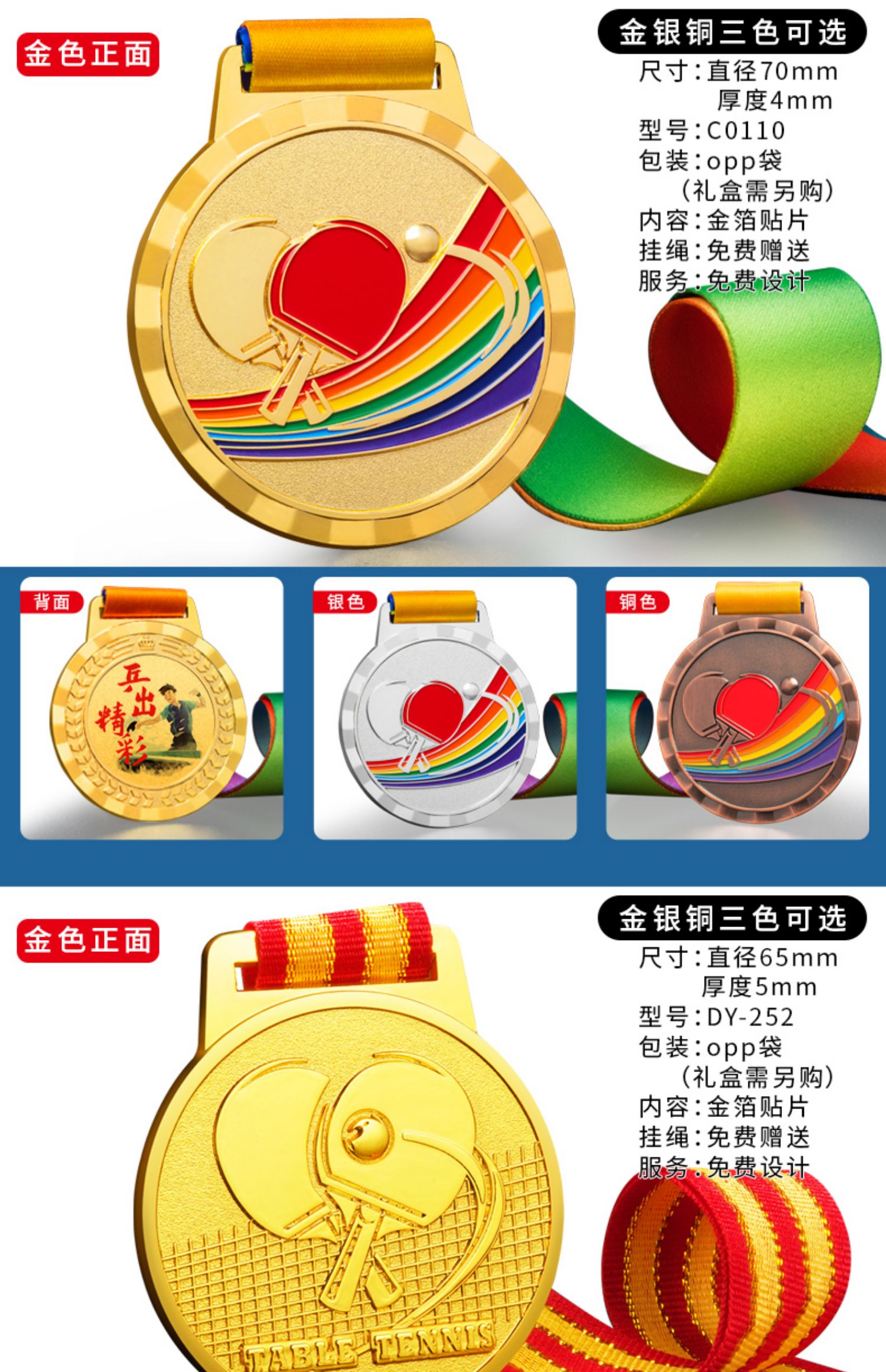 881 / 乒乓球奖牌定制运动比赛金银铜牌金箔奖杯定做儿童颁奖冠亚季奖品