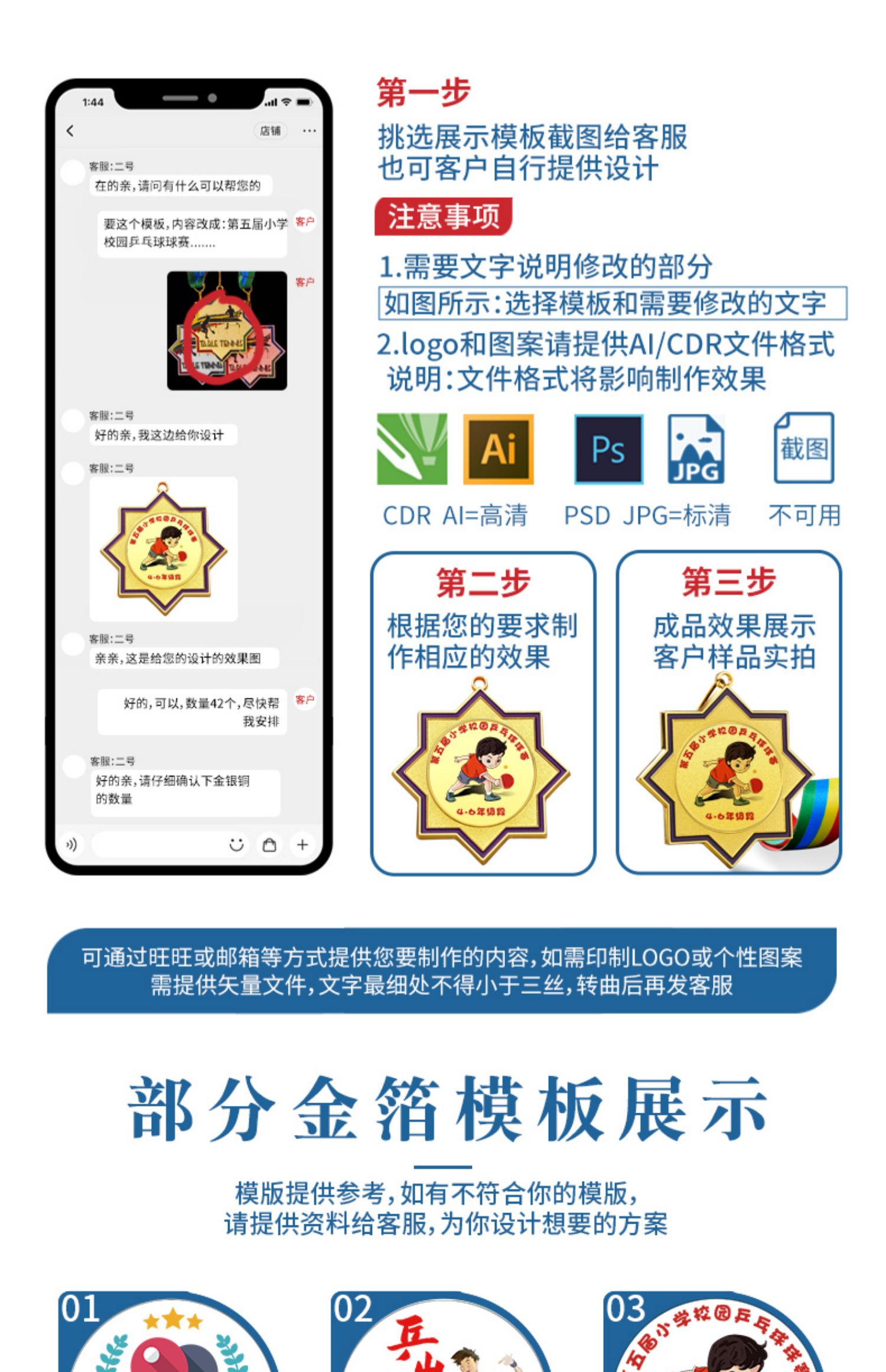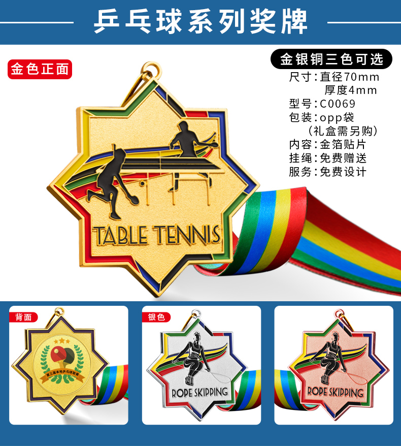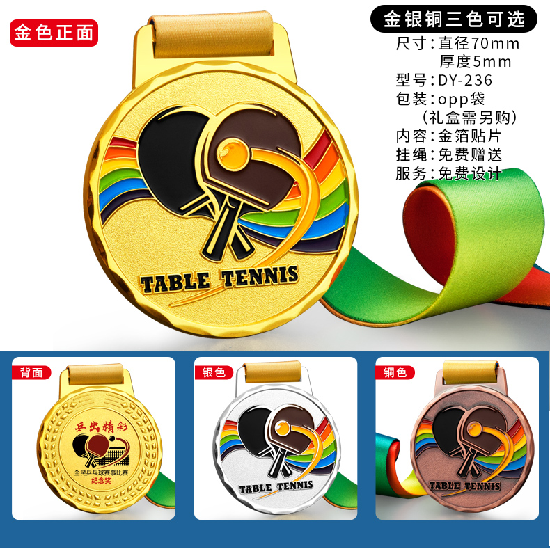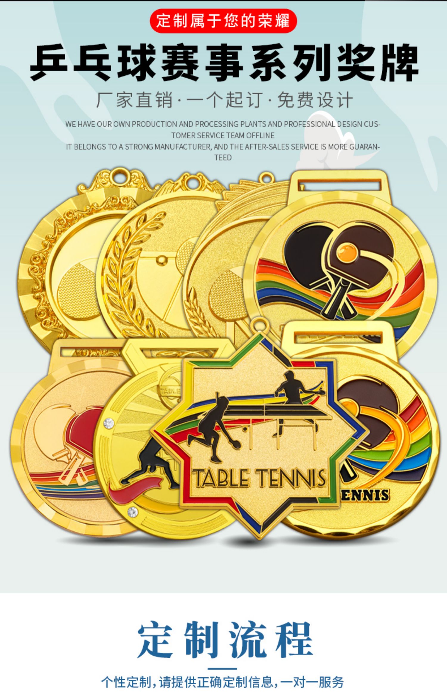 881 / 乒乓球奖牌定制运动比赛金银铜牌金箔奖杯定做儿童颁奖冠亚季奖品