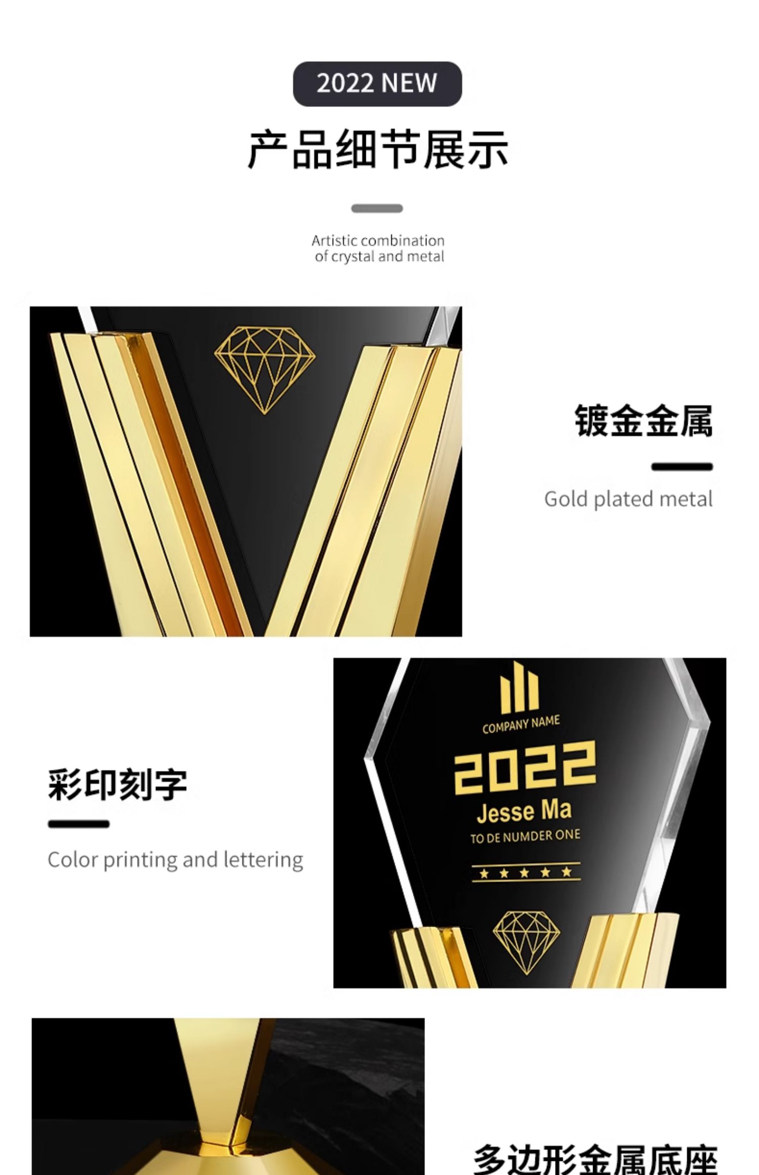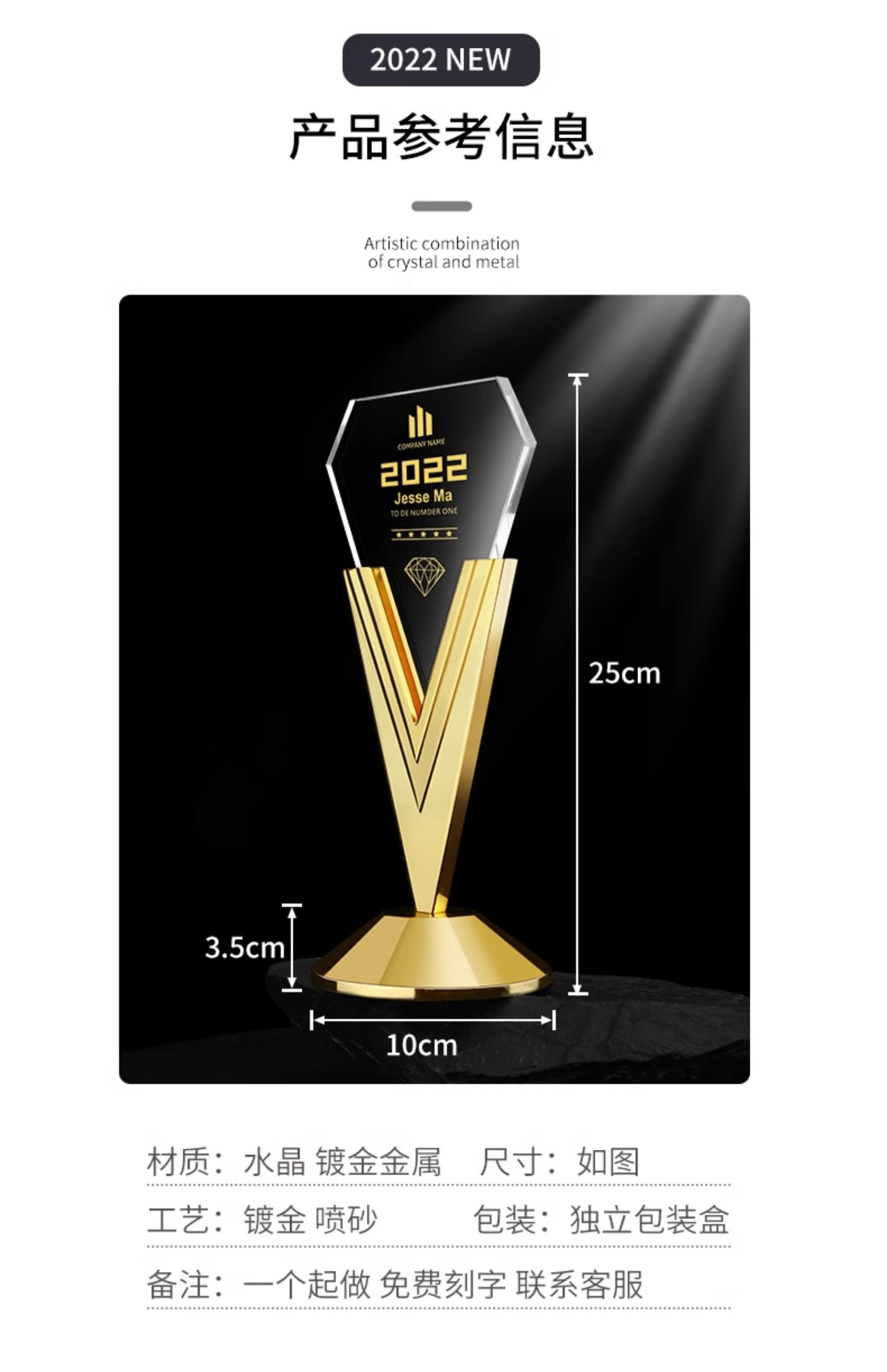 新款金属水晶奖杯