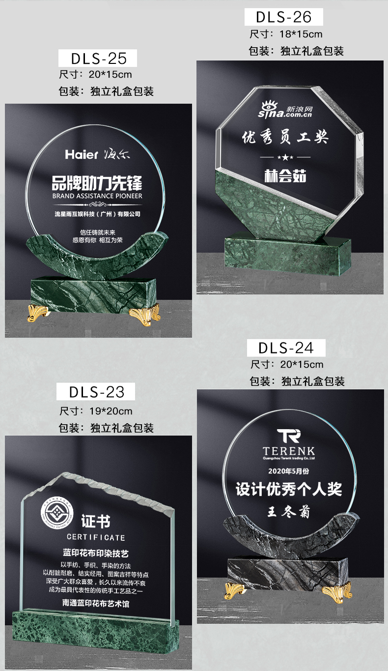 【大理石水晶奖牌