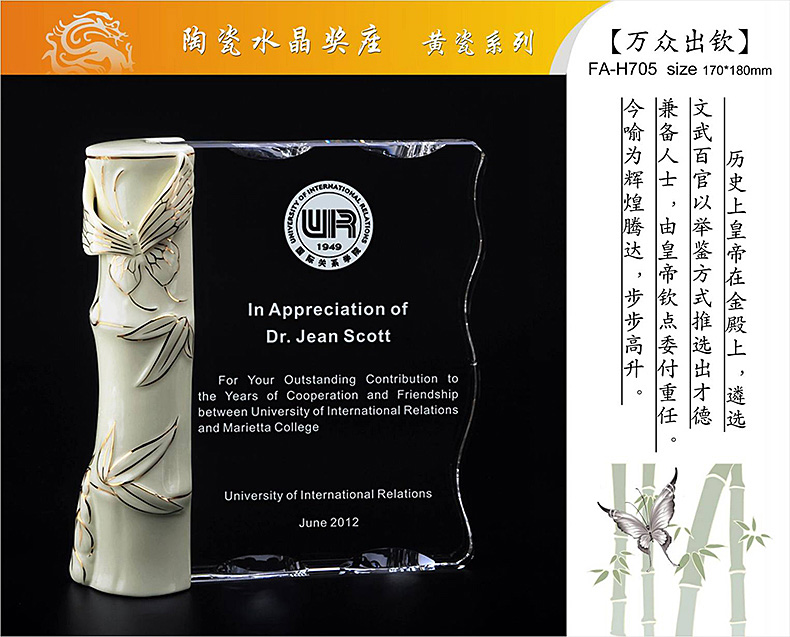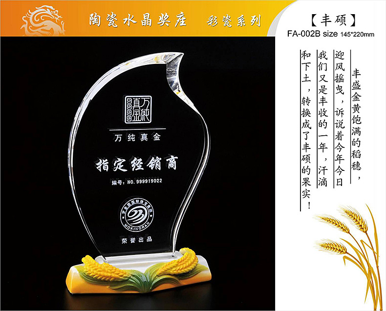 1001 / 水晶陶瓷奖杯定制创意奖牌周年庆古典孔雀感谢奖牌定做授权加盟牌