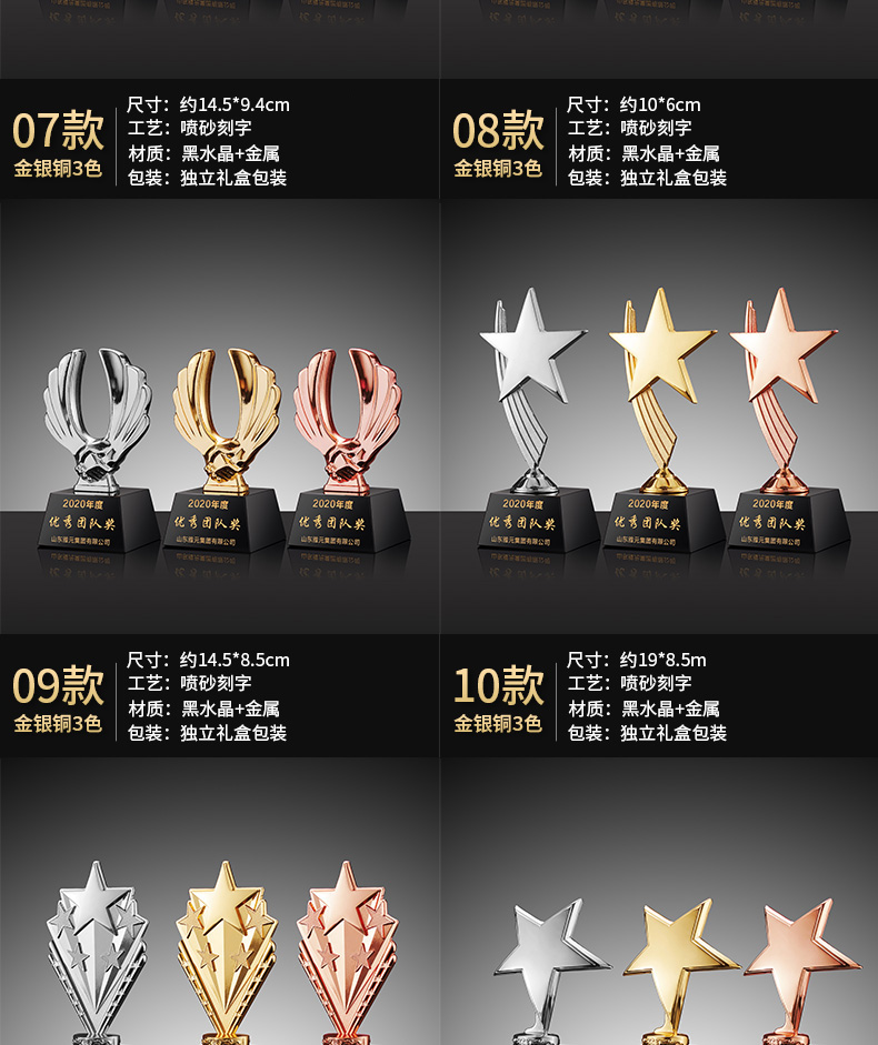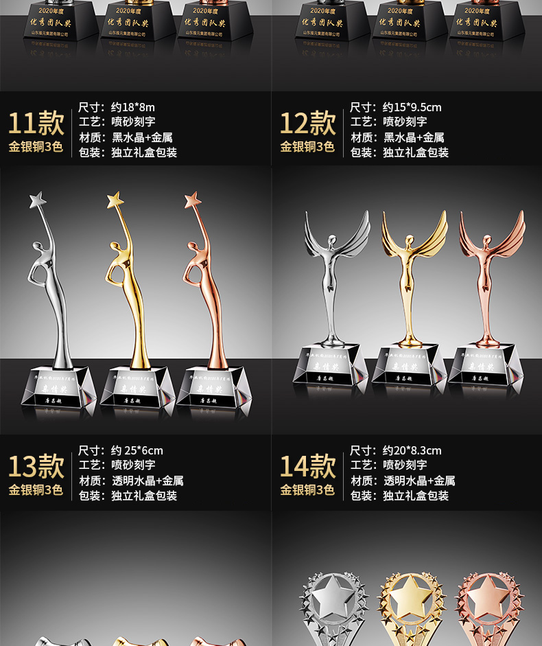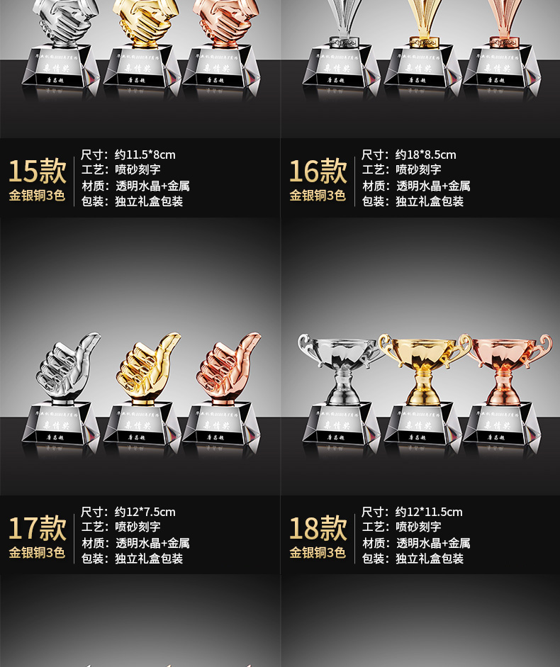 新款金属水晶奖杯