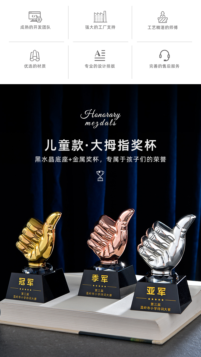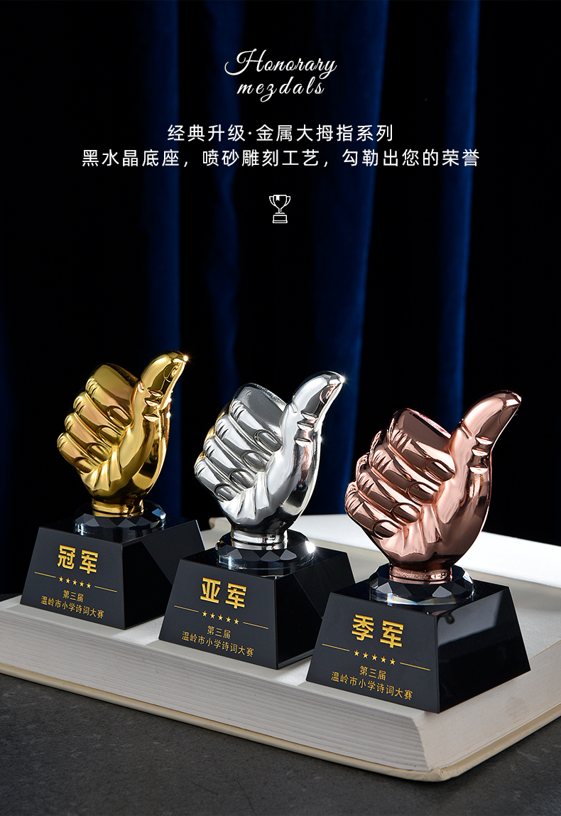 1039 / 金属水晶奖杯定制金属大拇指五角星天使比赛公司员工年会颁奖刻字