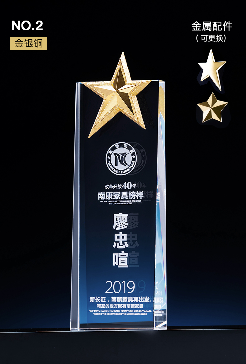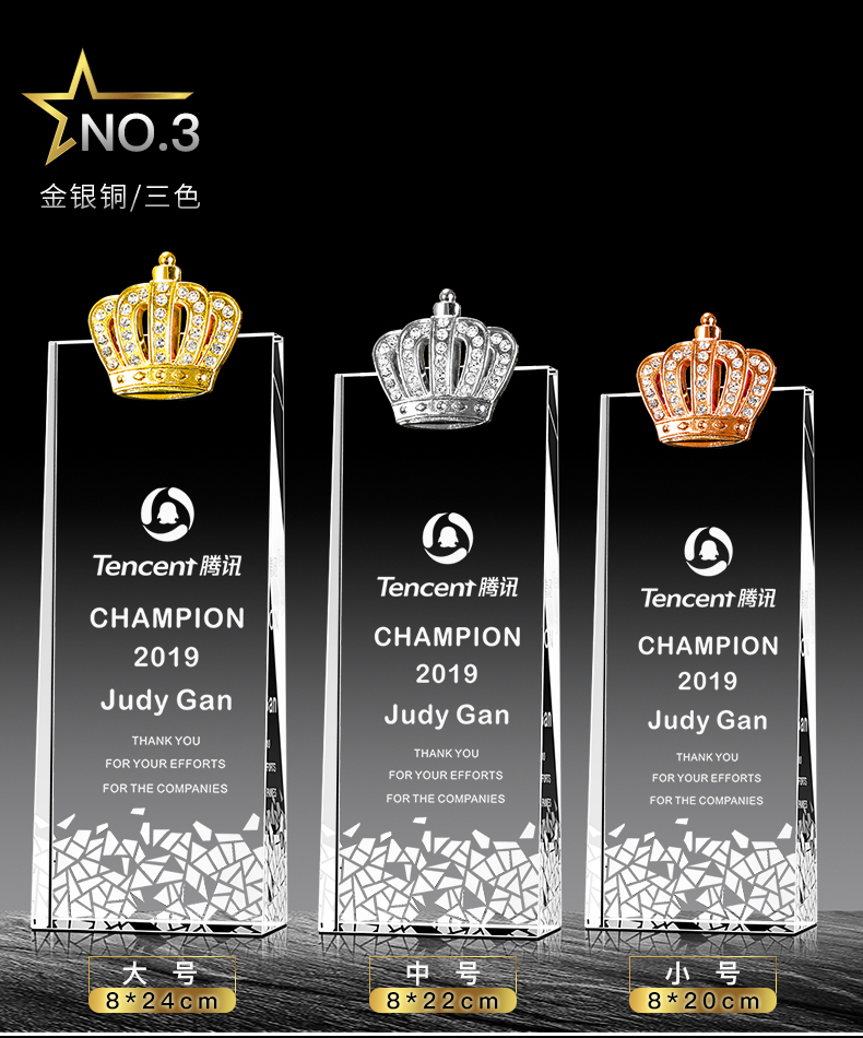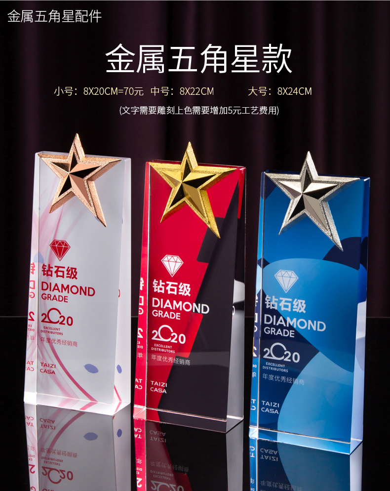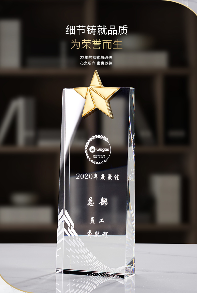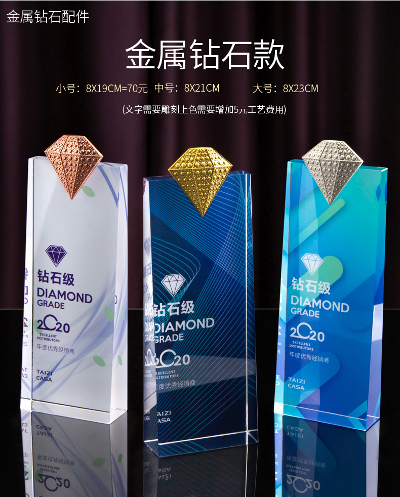 114 / 水晶奖杯定制作奖牌麦穗五角星钻石皇冠定做银行保险员工年会刻字