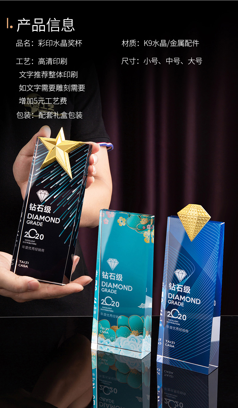水晶奖杯定制彩印