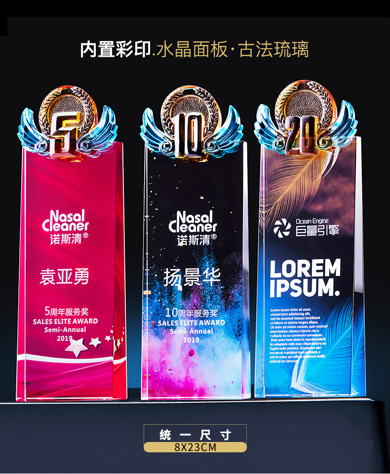 炫彩色彩印水晶奖