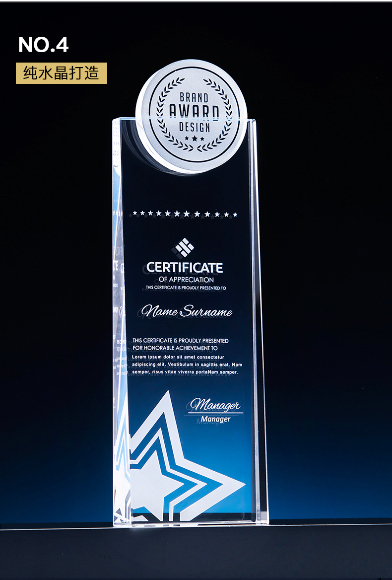 水晶挂牌奖牌
