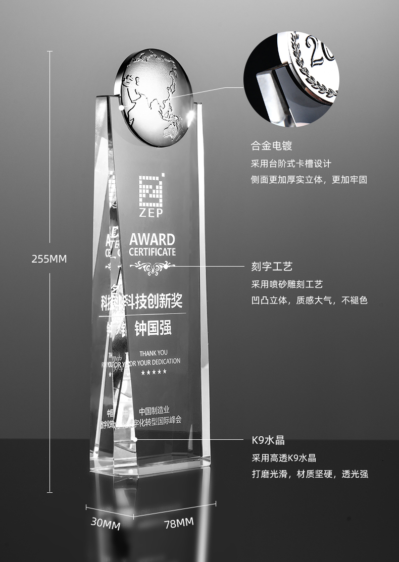 创意金属水晶奖杯
