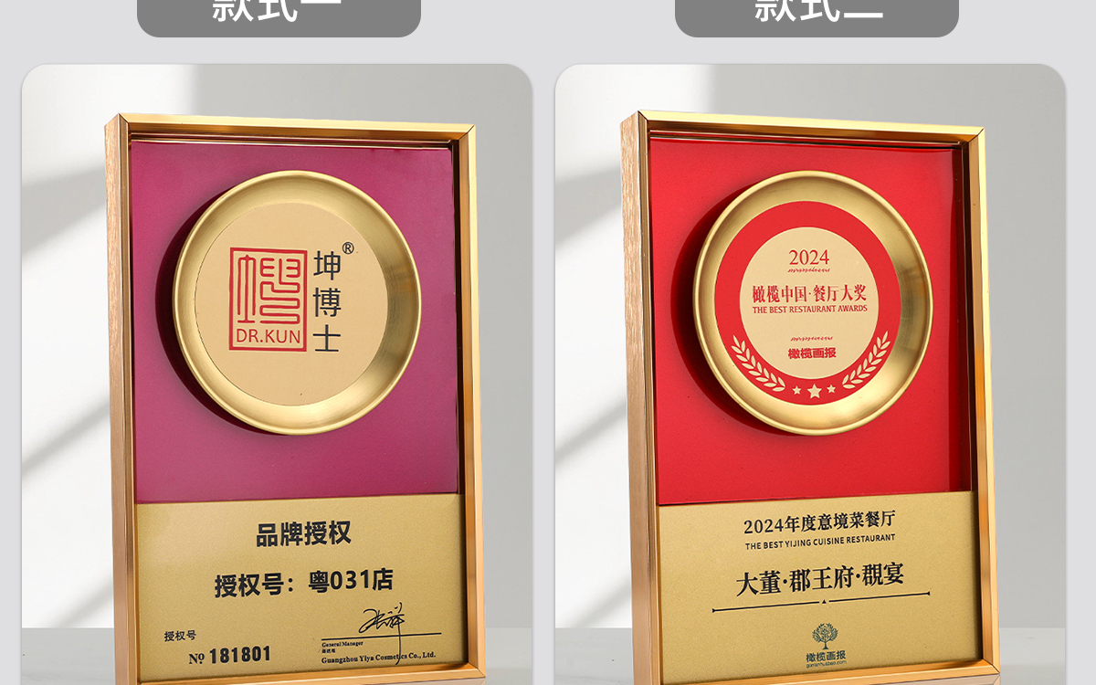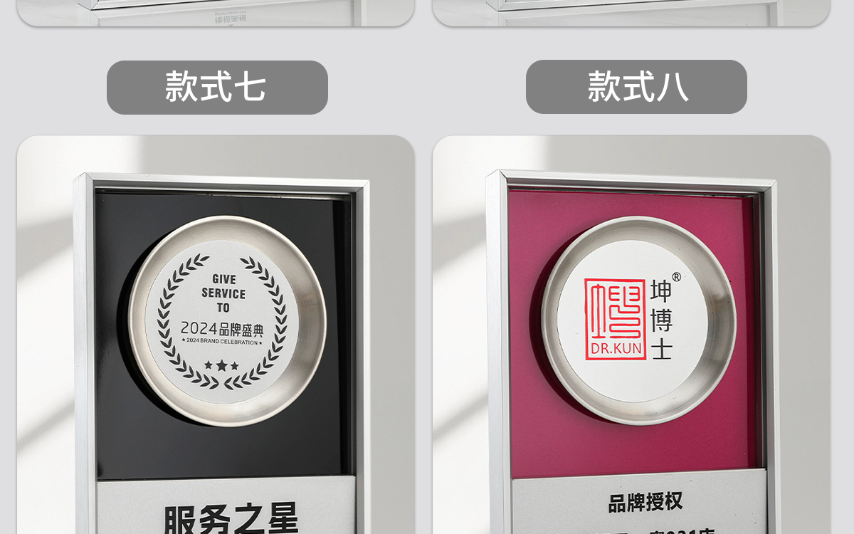 65 / 木质授权牌胡桃木奖牌定制定做加盟商创意五角星金属荣誉奖杯牌匾