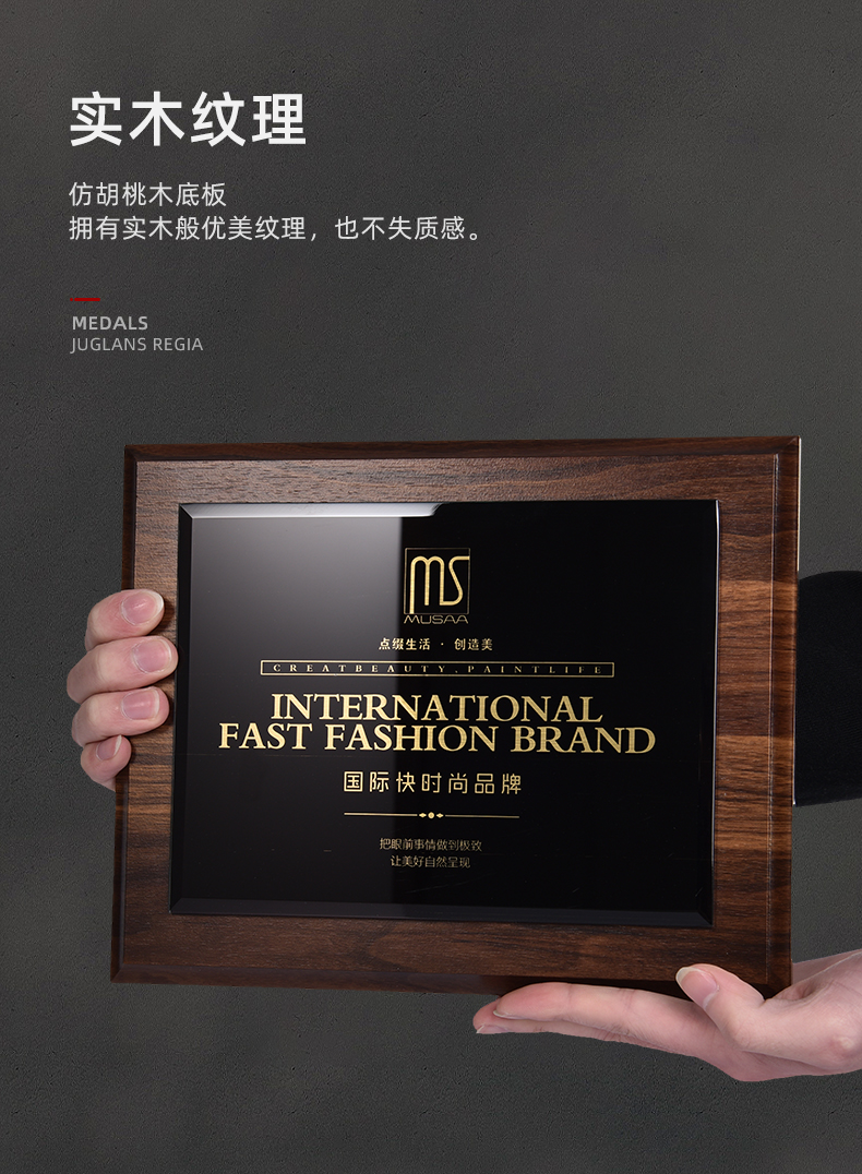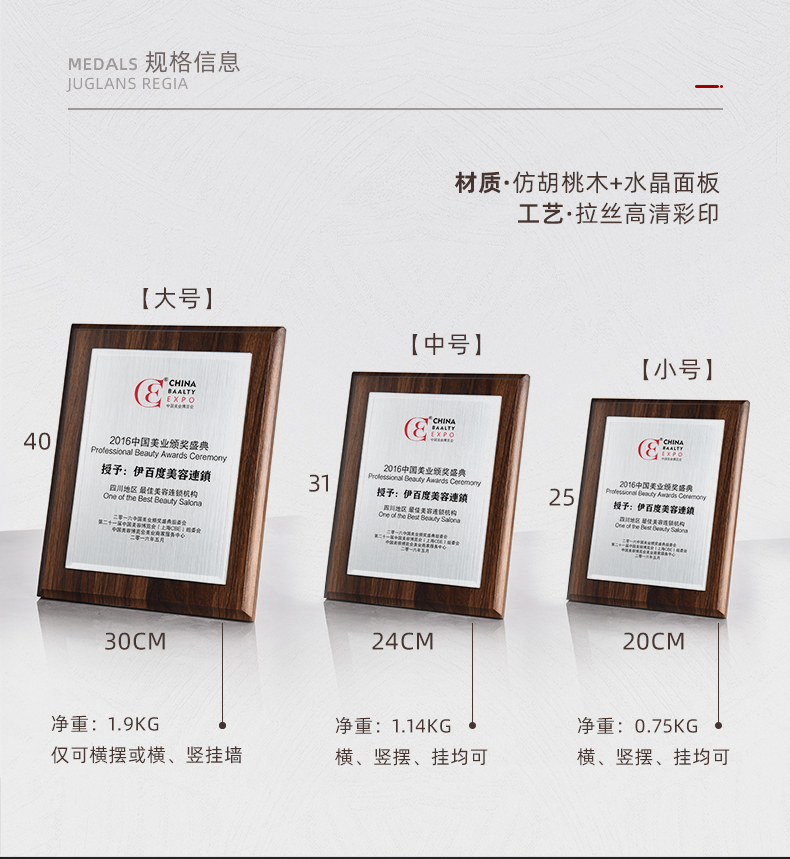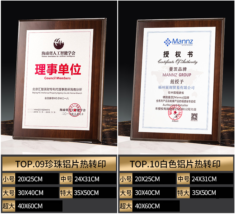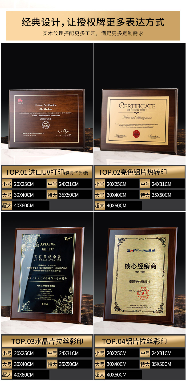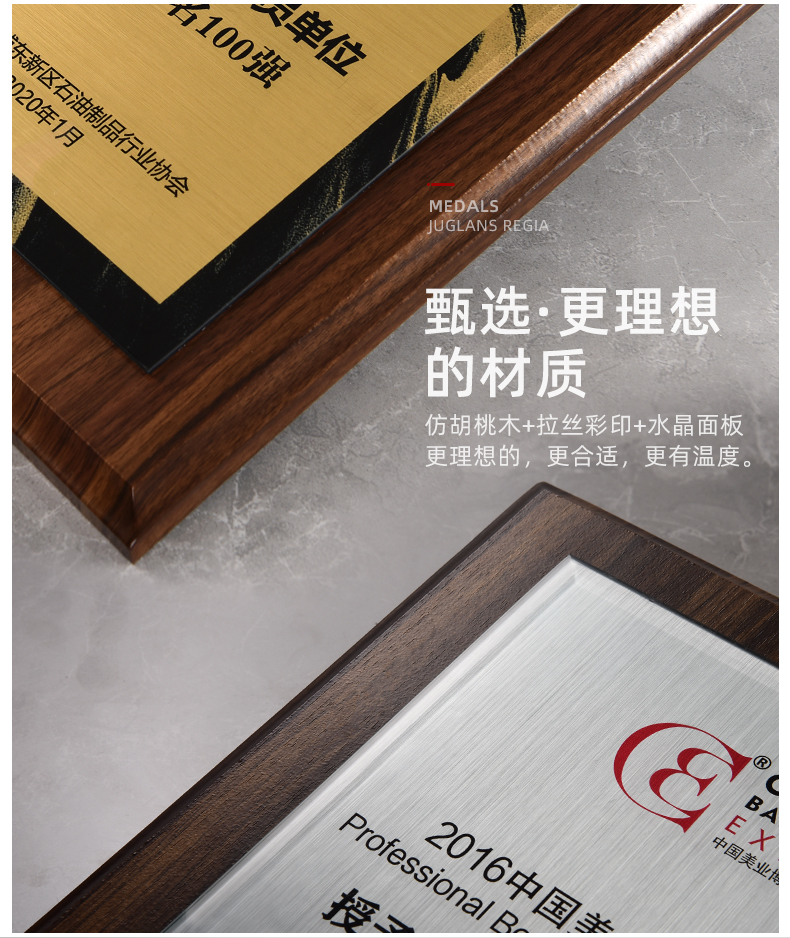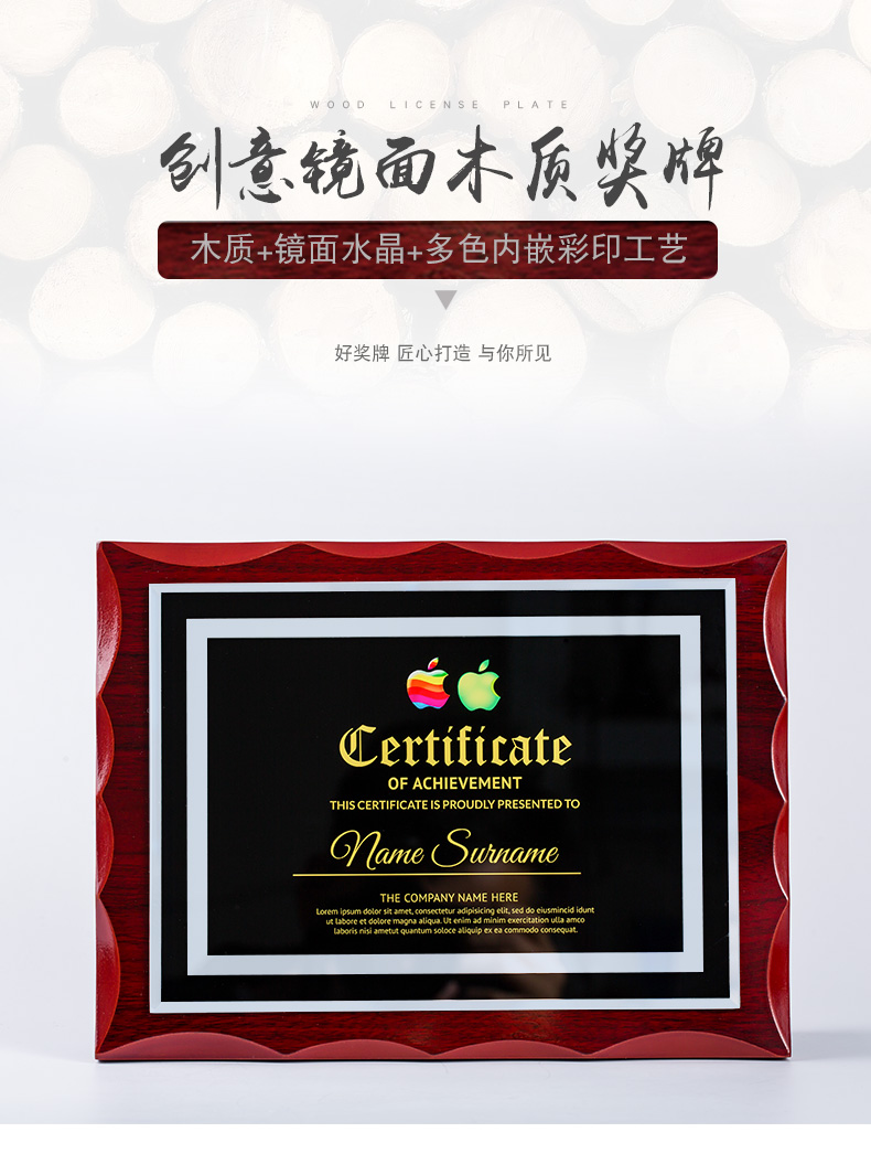 535 / 奖牌定制木质水晶授权牌商会战略合作伙伴牌匾加盟代理商荣誉证书