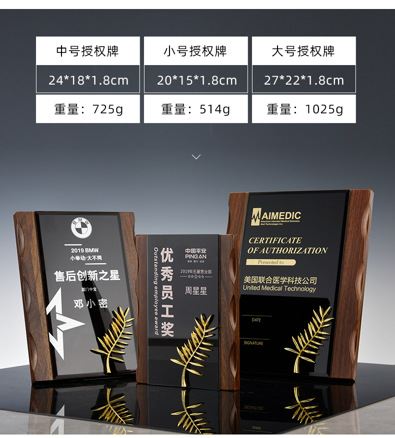 516 / 授权牌定制水晶奖牌奖杯加盟代理经销商品牌认证荣誉扁聘书定制