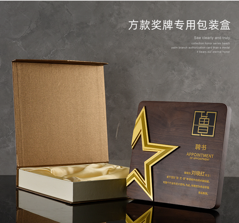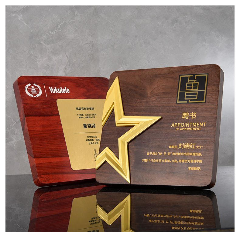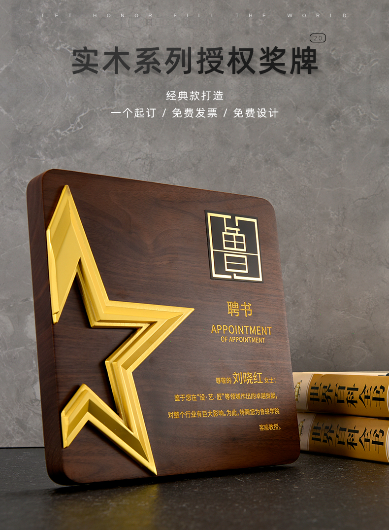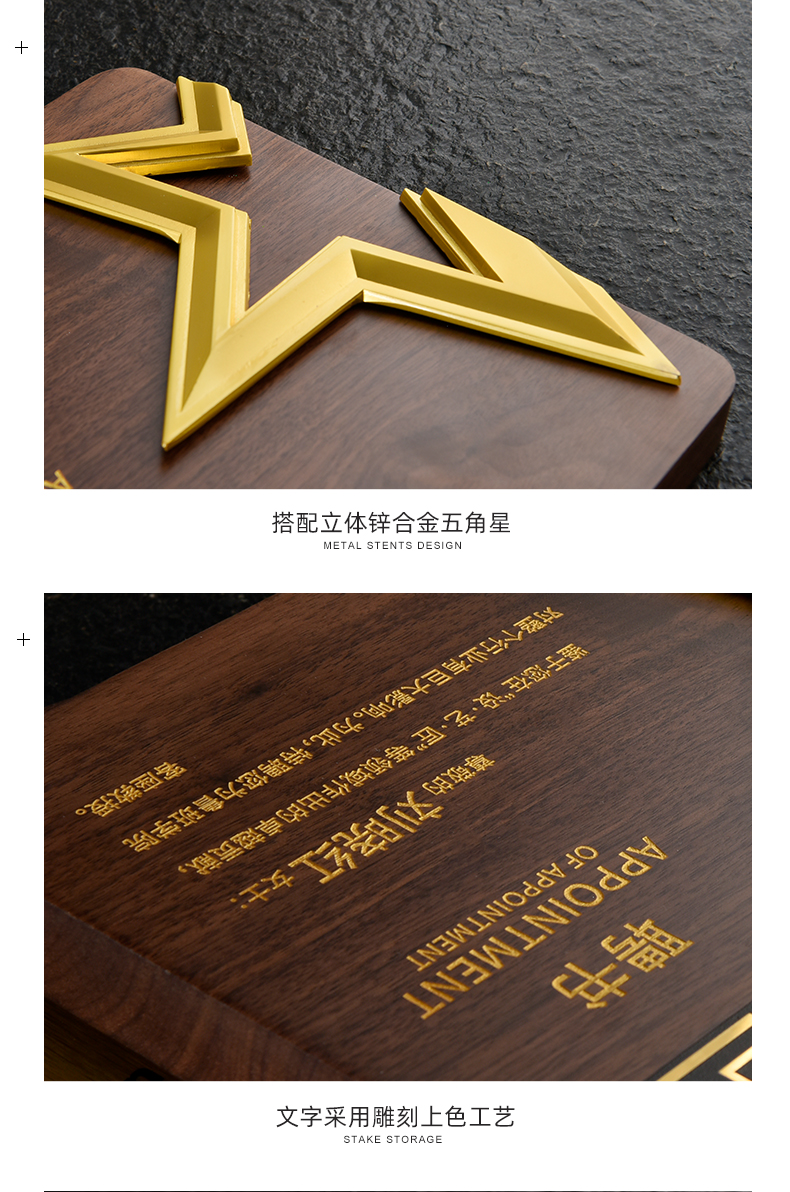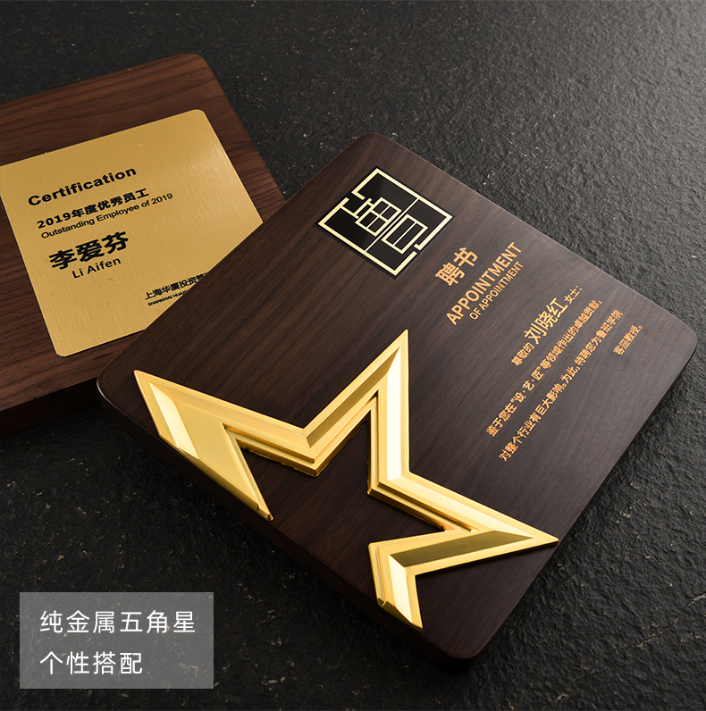 527 / 五角星胡桃实木奖牌定制授权牌荣誉证书聘书加盟代理表彰奖杯奖牌