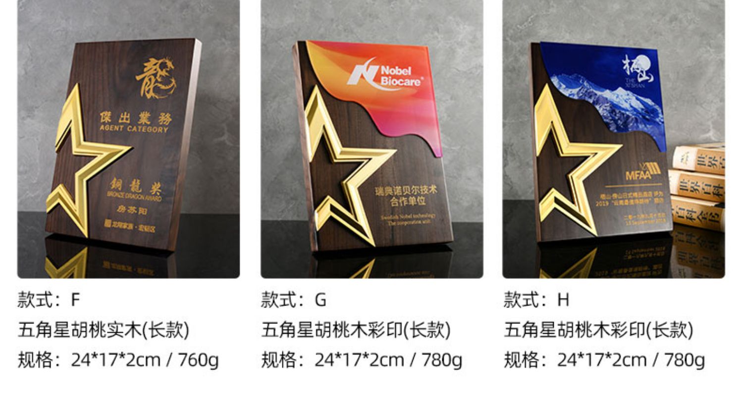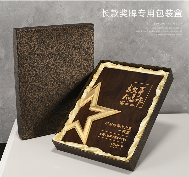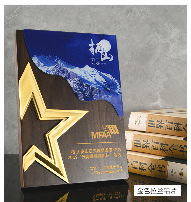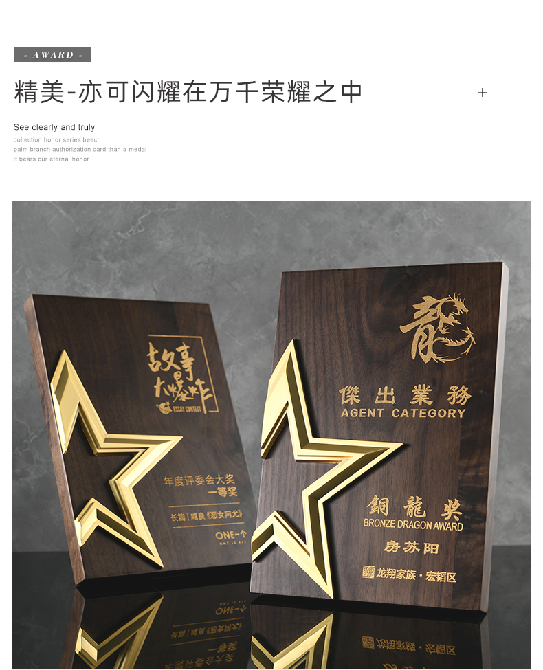 527 / 五角星胡桃实木奖牌定制授权牌荣誉证书聘书加盟代理表彰奖杯奖牌
