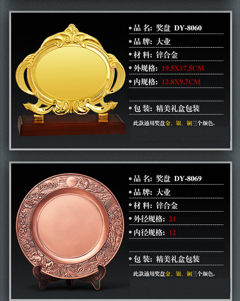 制高端金属奖盘奖
