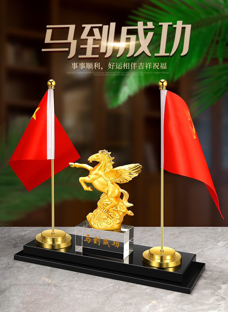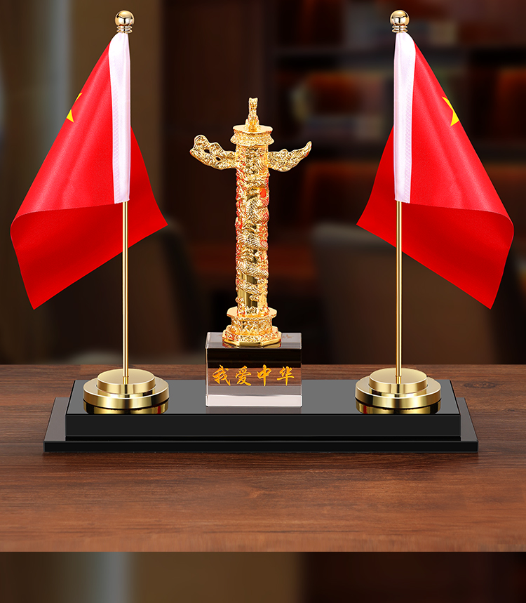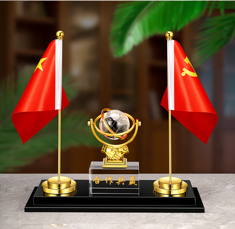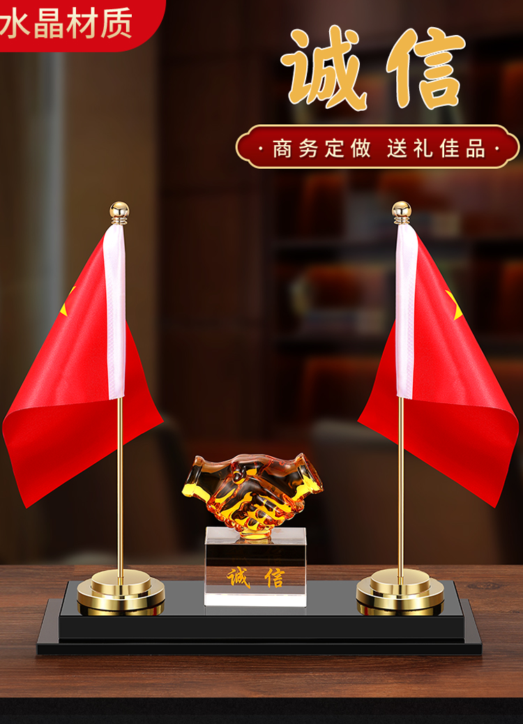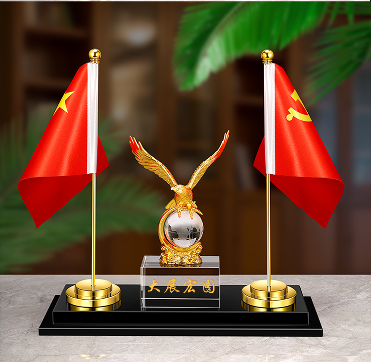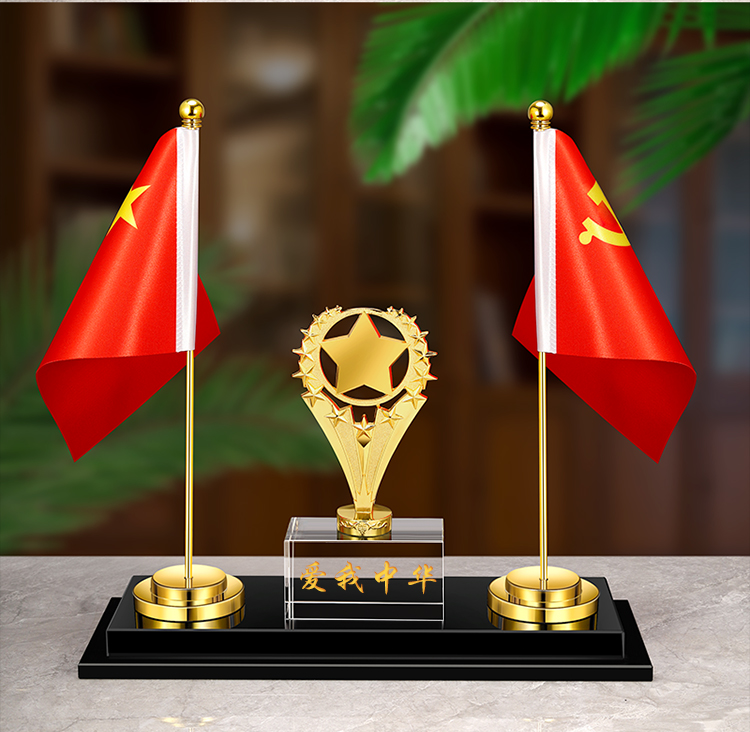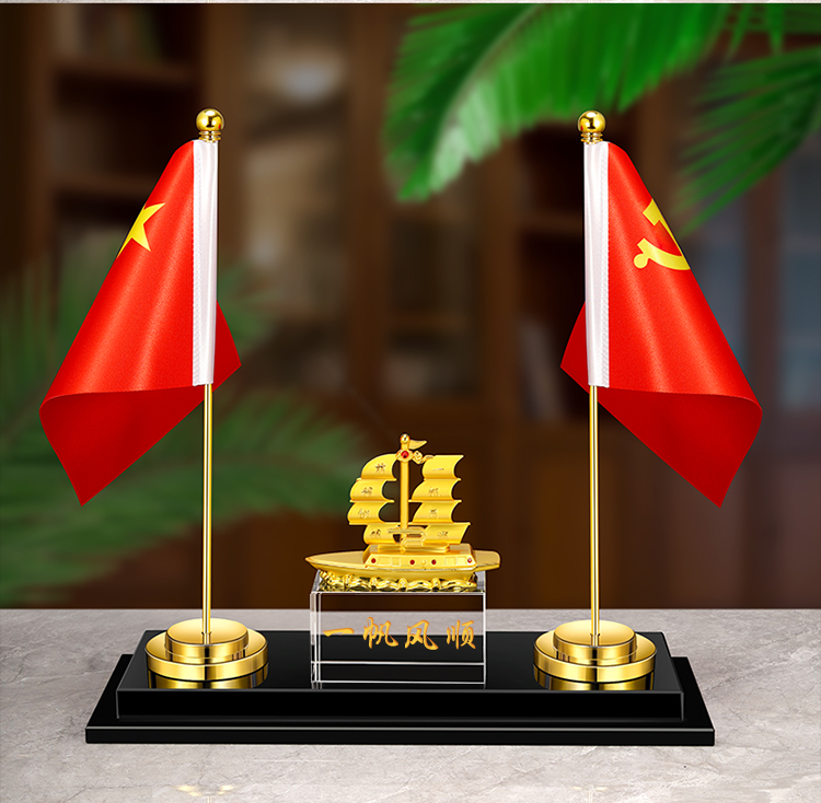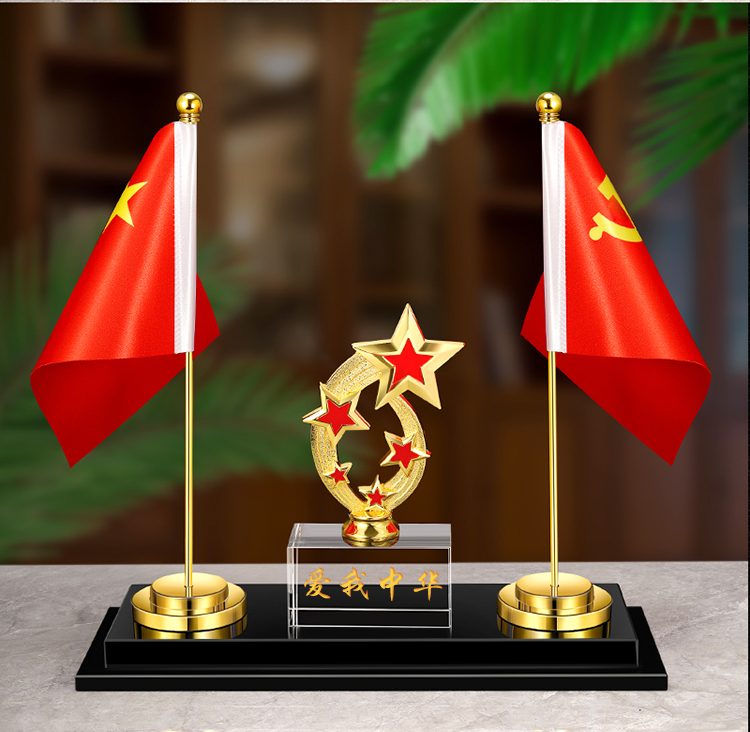 903 / 【办公三件套】高档党旗国旗办公桌面水晶摆件国旗老板办公室桌旗文台收纳会议室桌面装饰品旗座旗子五星