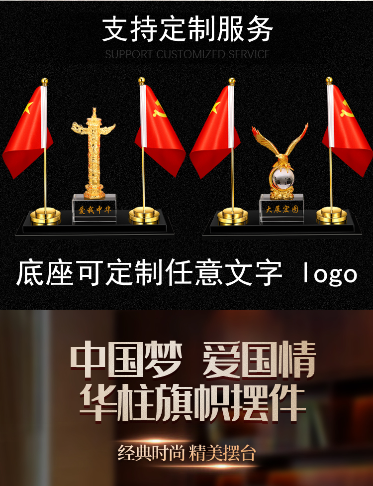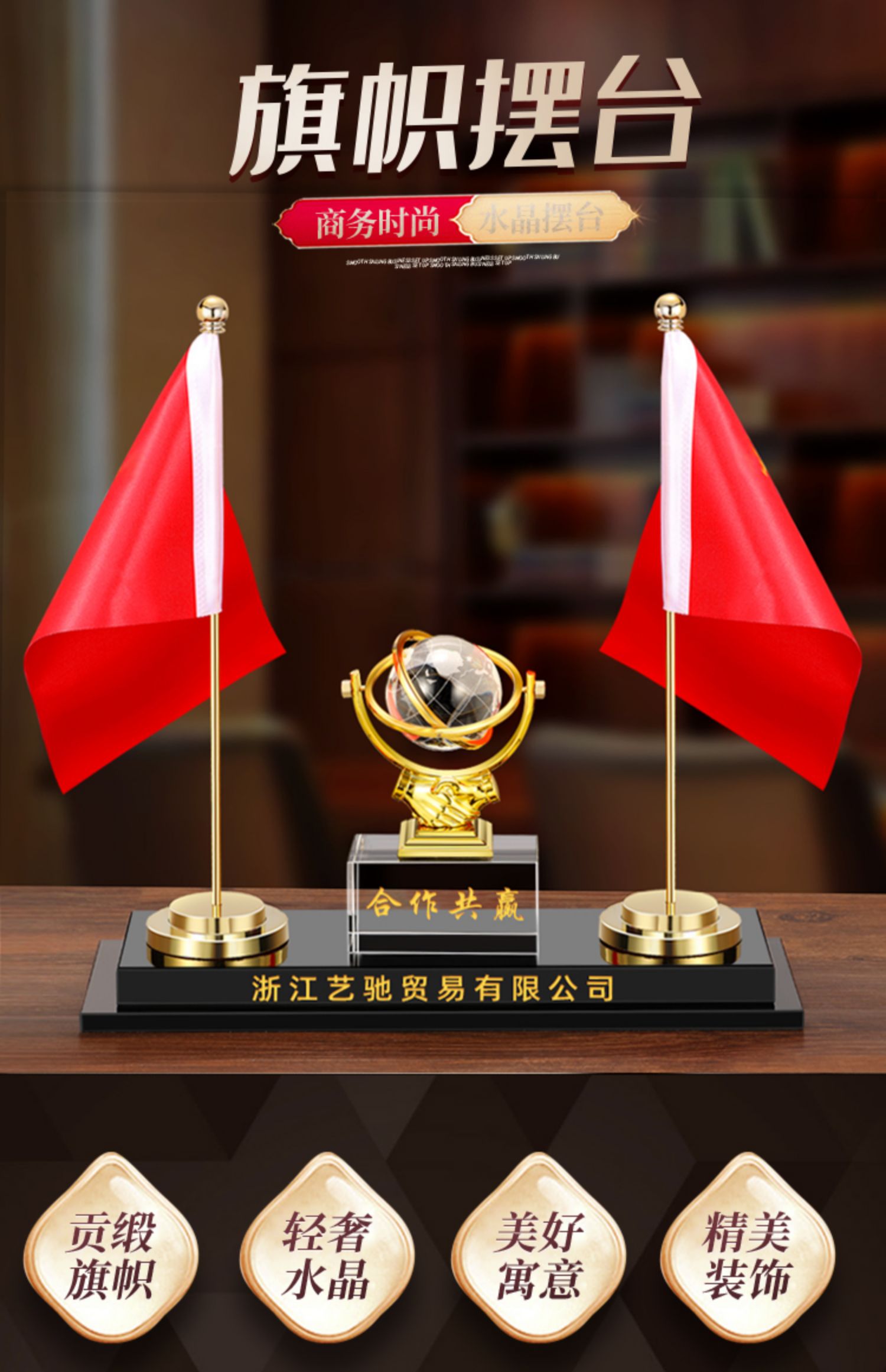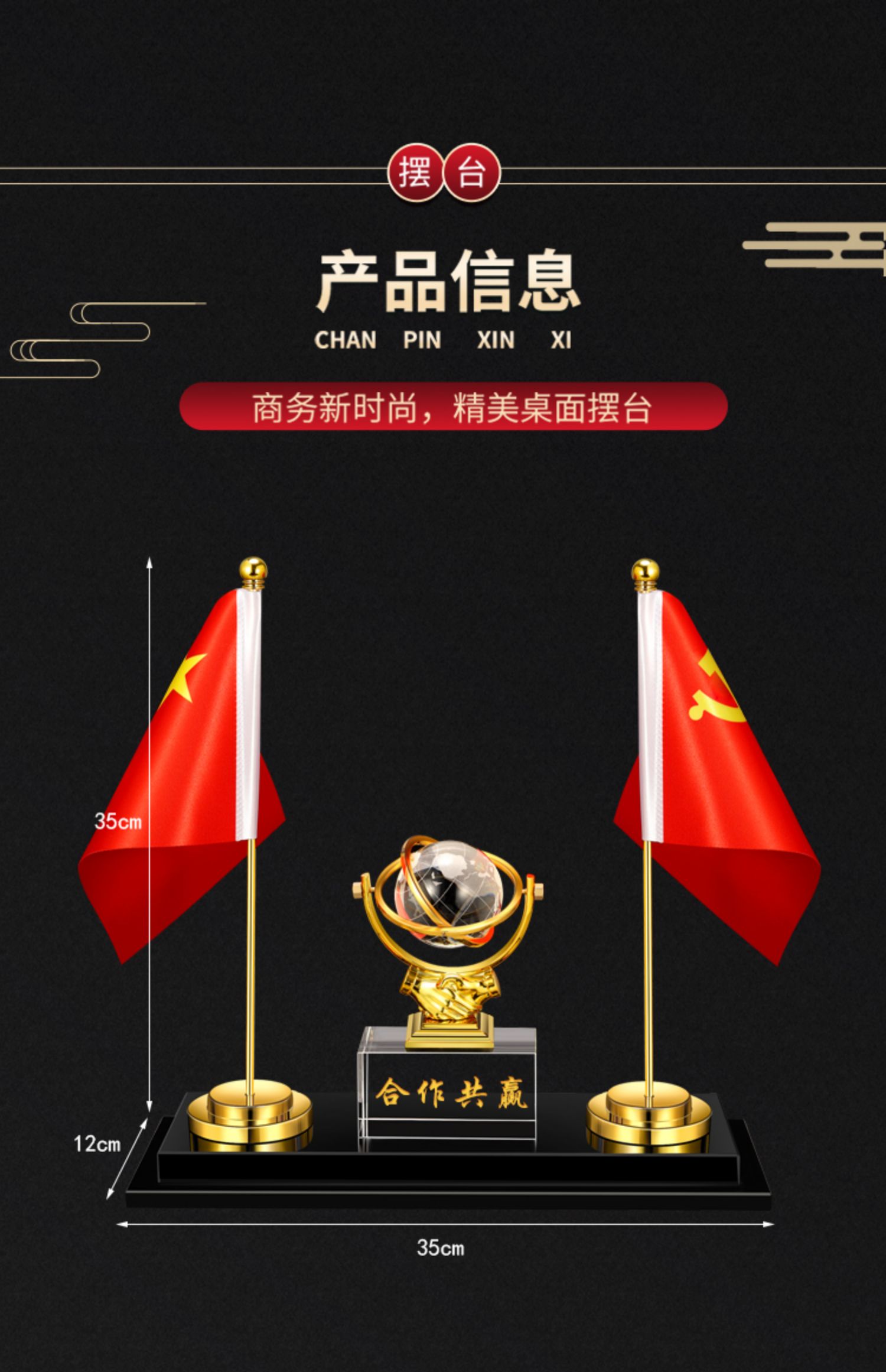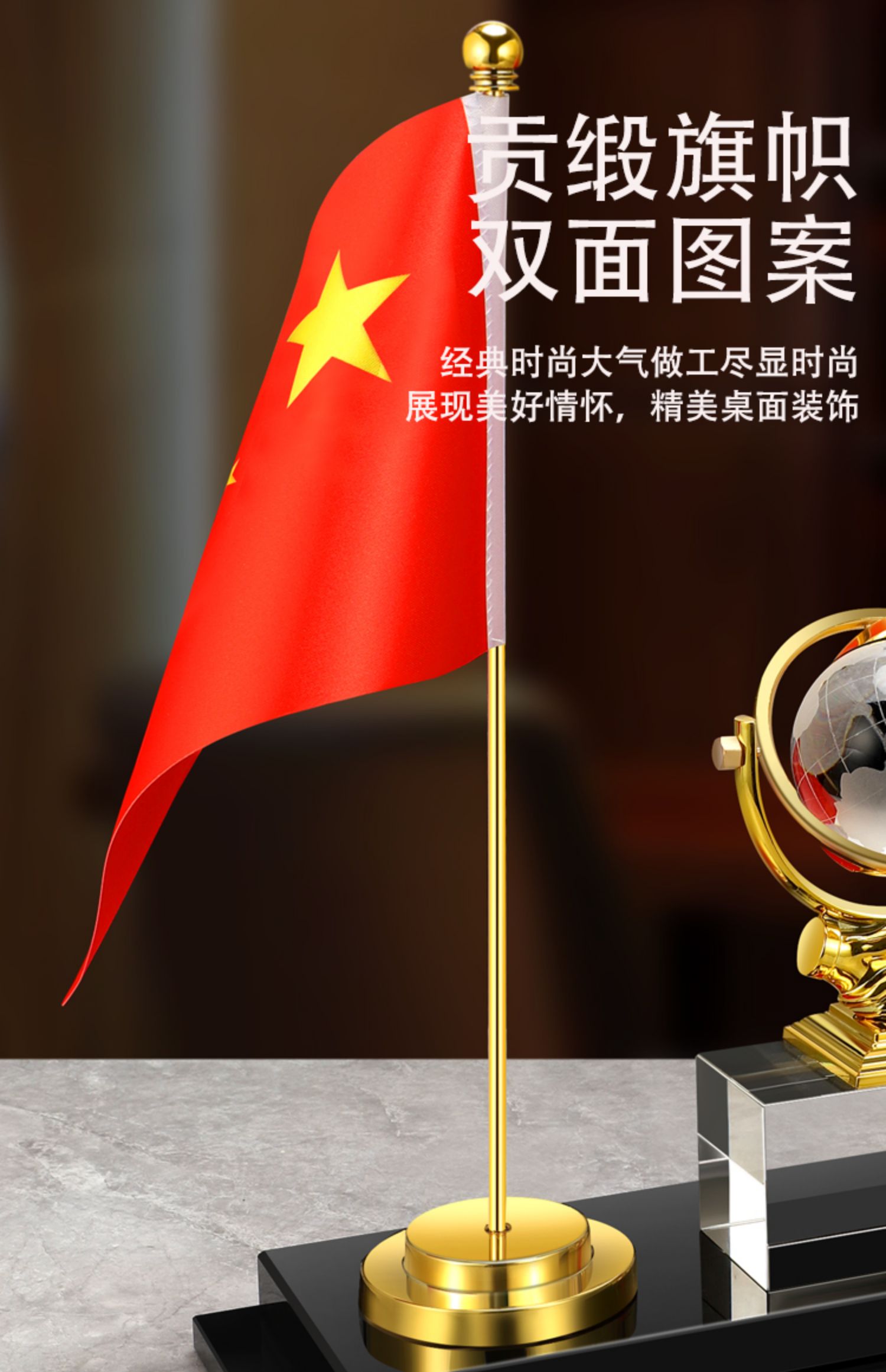 903 / 【办公三件套】高档党旗国旗办公桌面水晶摆件国旗老板办公室桌旗文台收纳会议室桌面装饰品旗座旗子五星