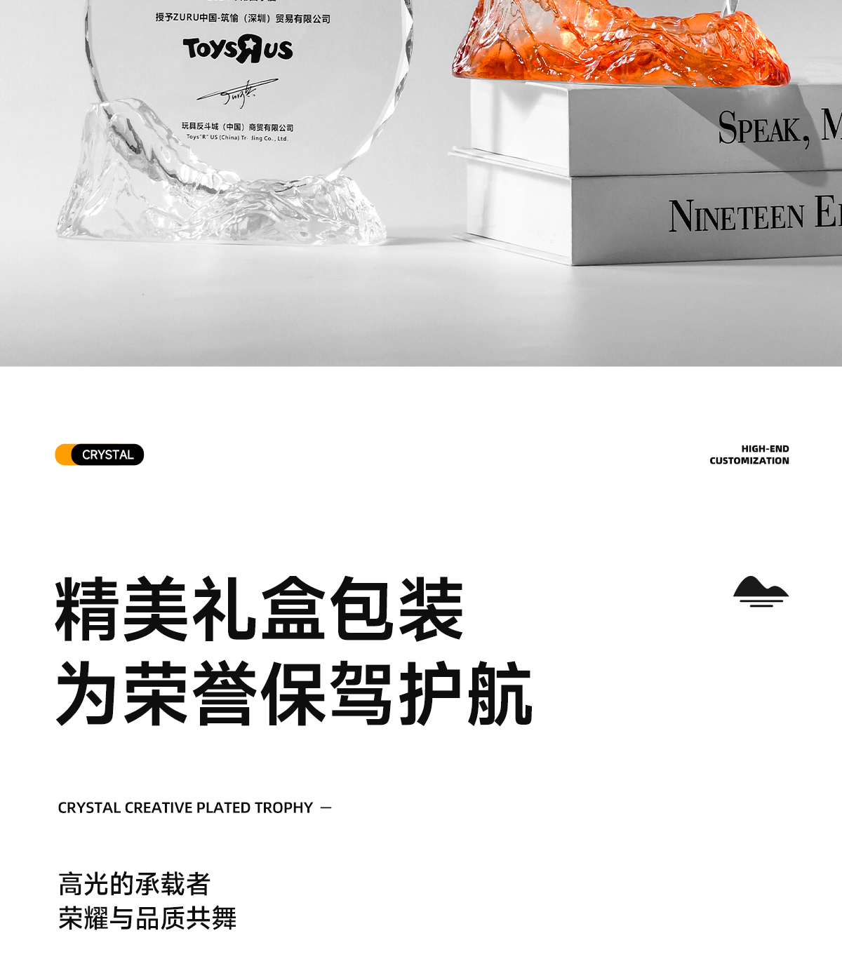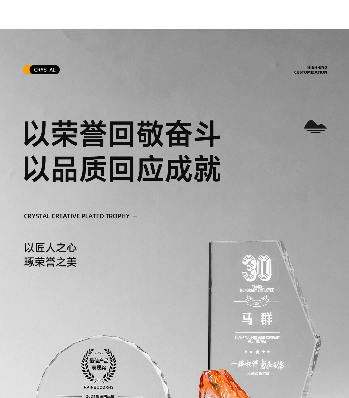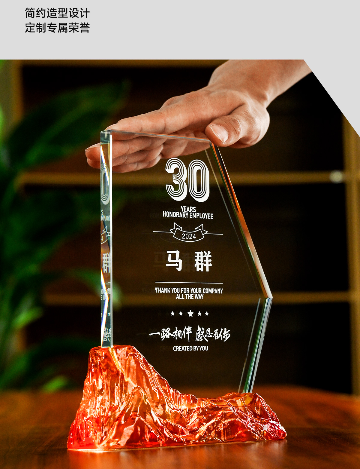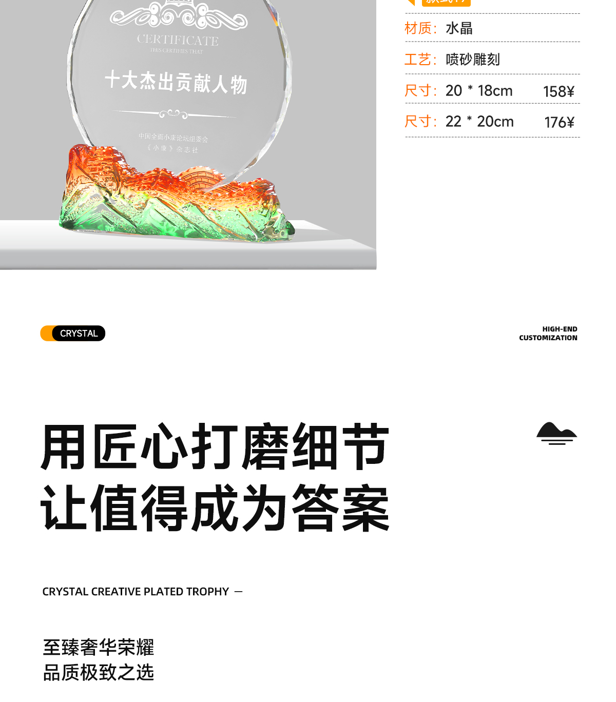 222 / 水晶奖杯定制高档大气创意山峰企业优秀员工光荣退休琉璃奖杯订制
