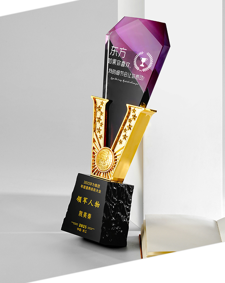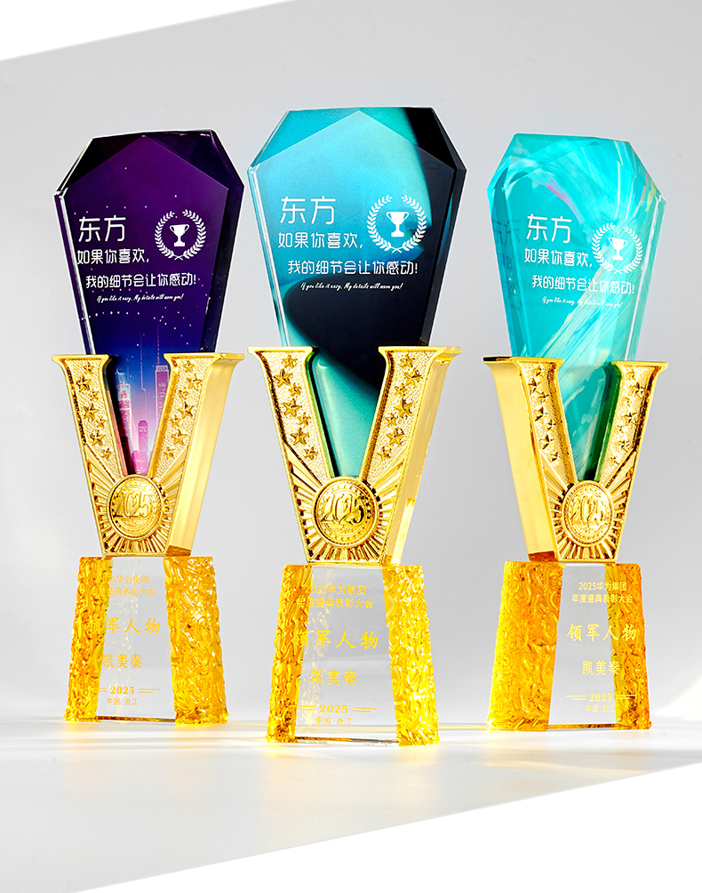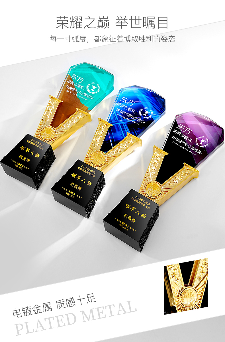 385 / 高端金属V形水晶奖杯定制公司优秀员工年会颁奖纪念创意荣誉奖牌