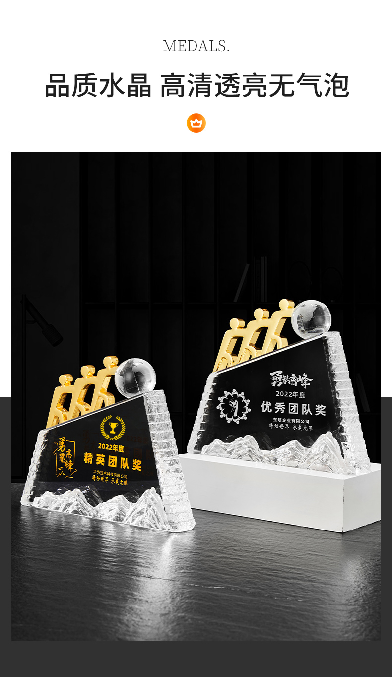 1024 / 高档冰山团队水晶奖杯奖牌创意定制刻字比赛优秀员工表彰纪念制作