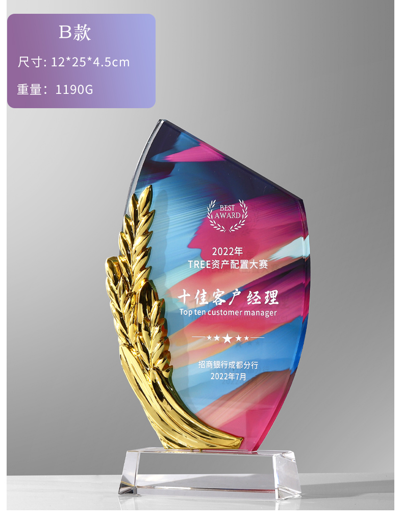 水晶奖杯定制彩印