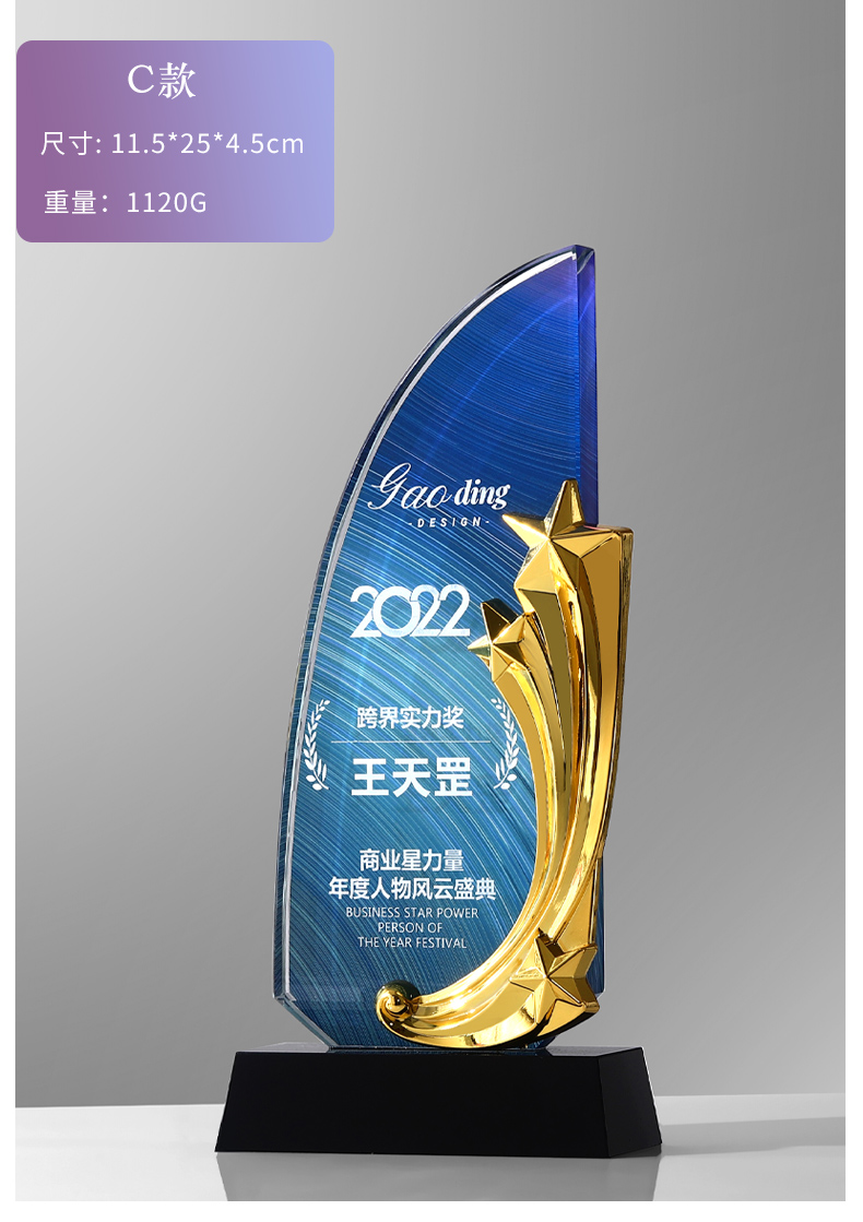 新款树脂水晶奖杯