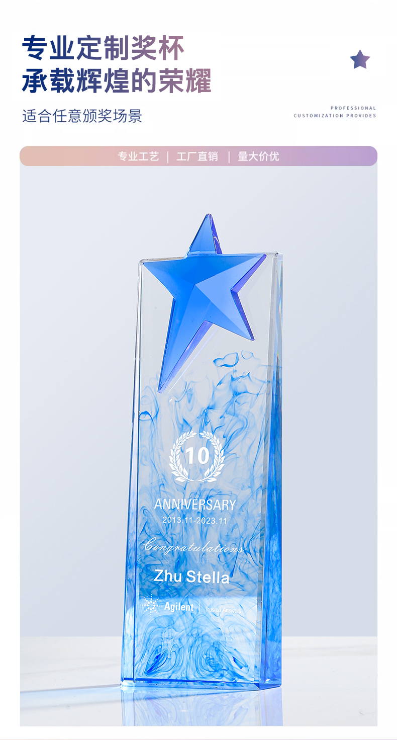 新款炫彩五角星水 【宝丽石奖杯】高