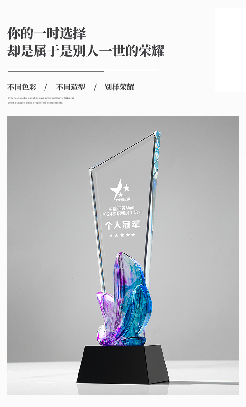 水晶奖杯定制高档 新款炫彩创意水晶