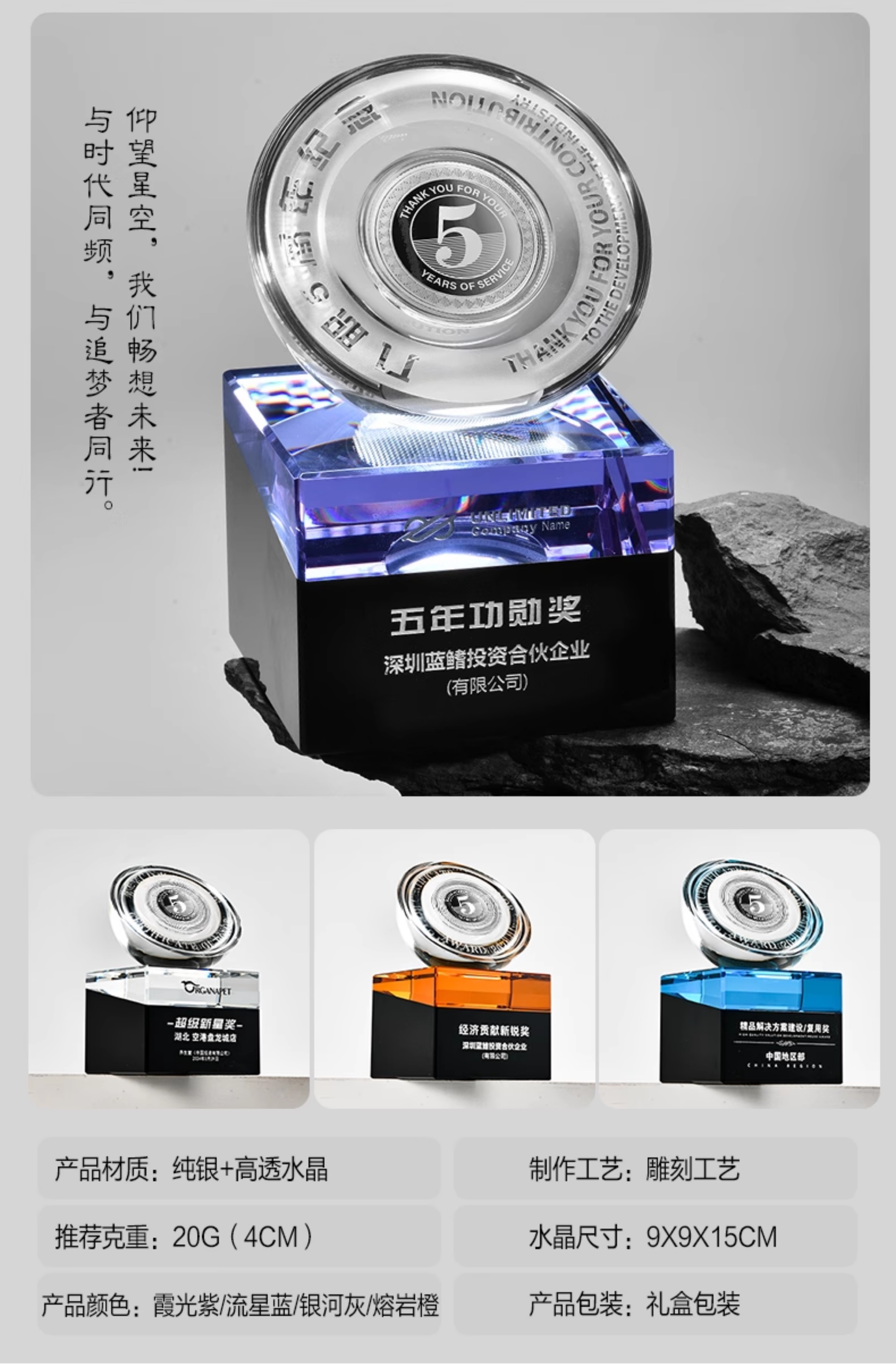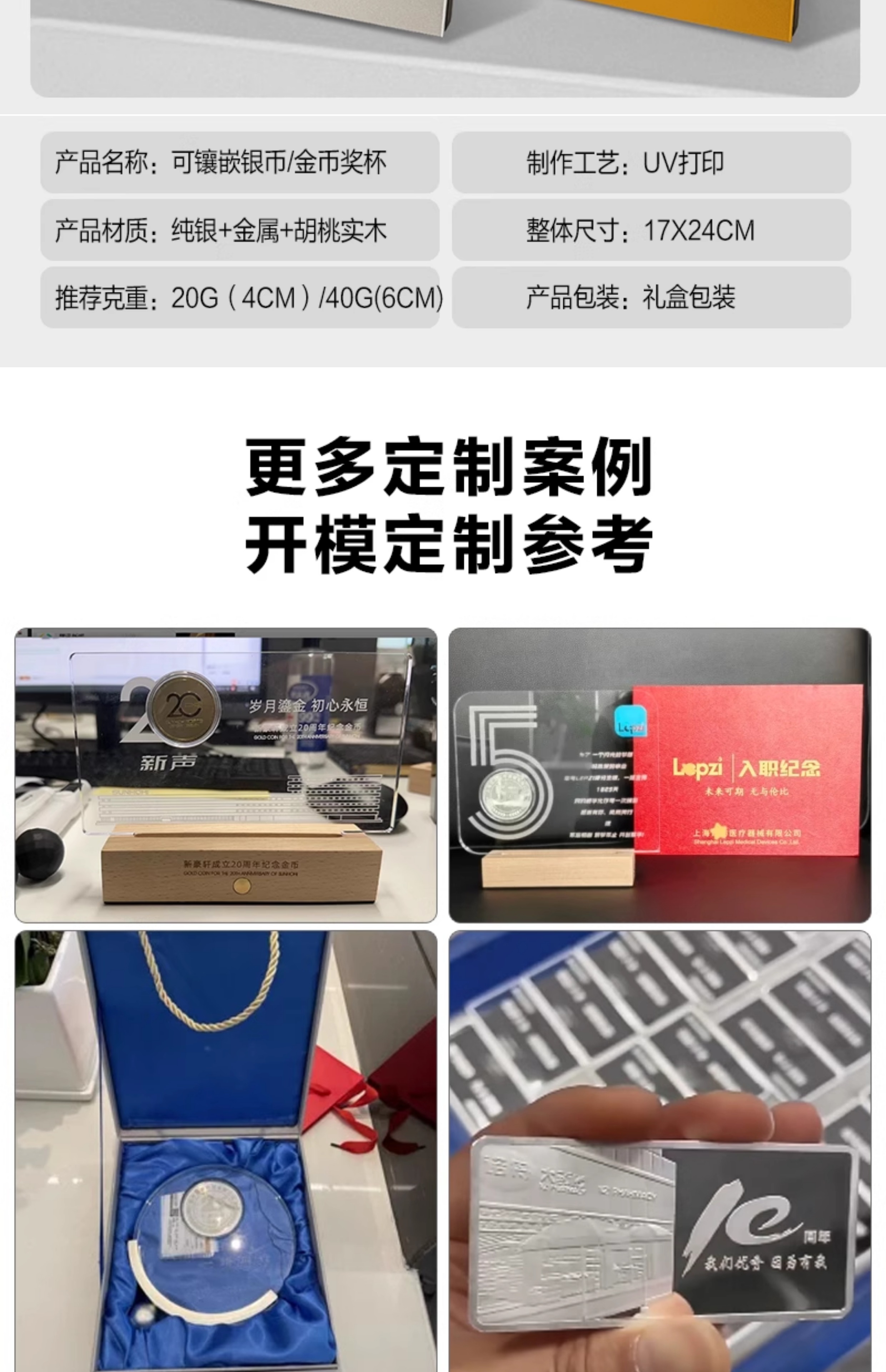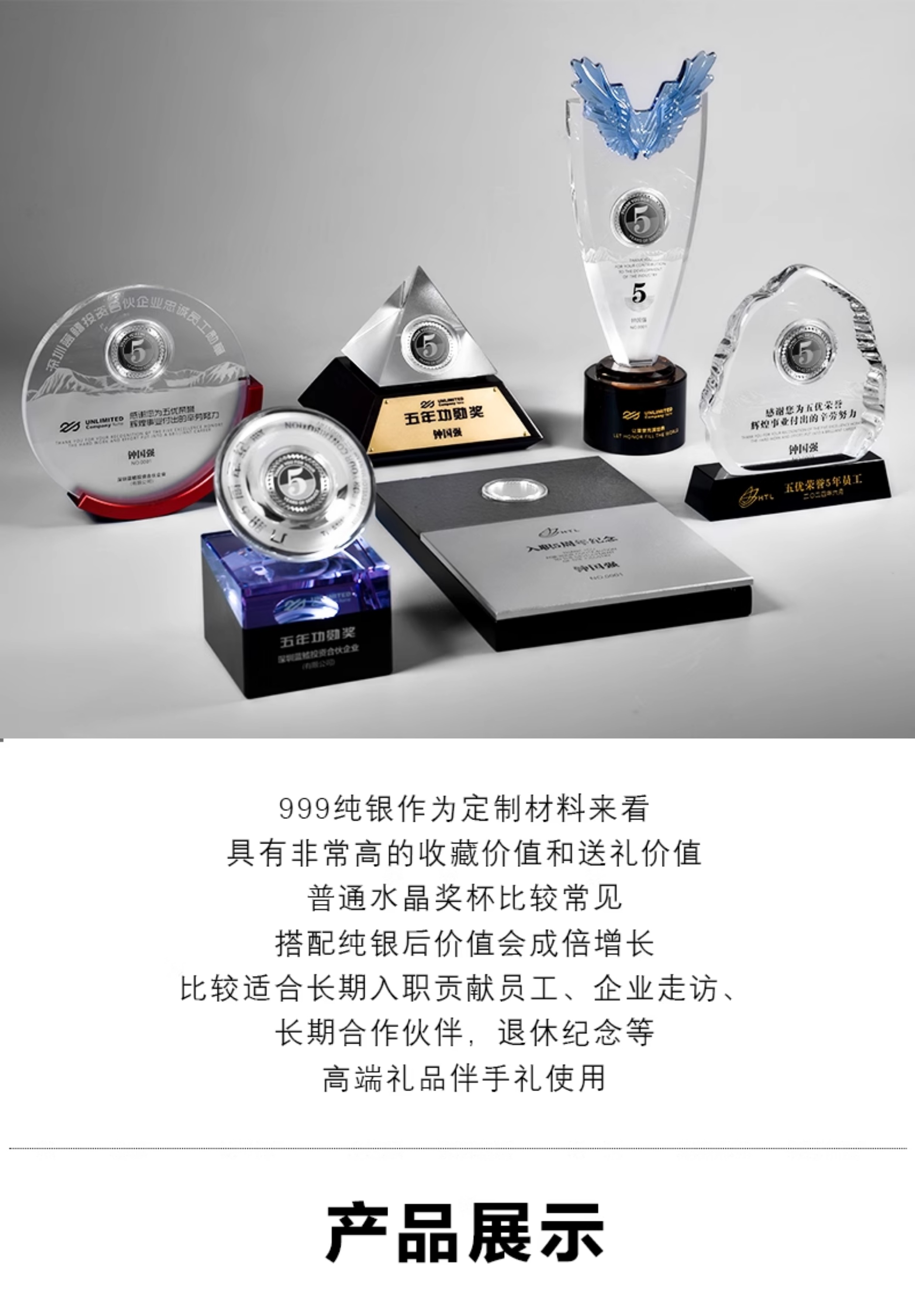 134 / 纯银纪念金币银币镶嵌高端水晶奖杯奖牌定制荣誉周年庆达人冠军