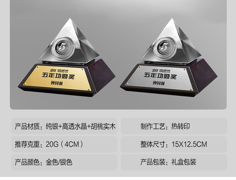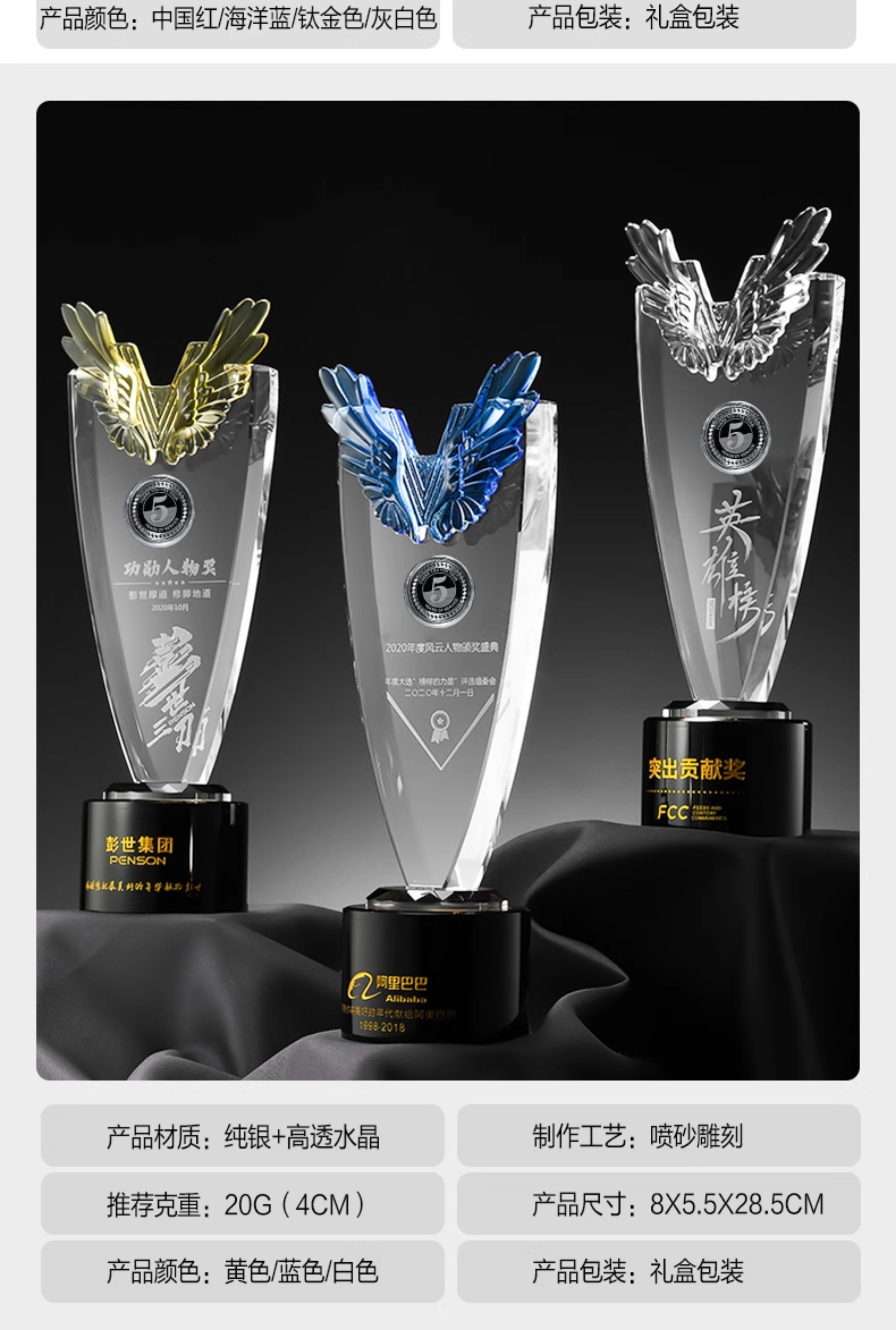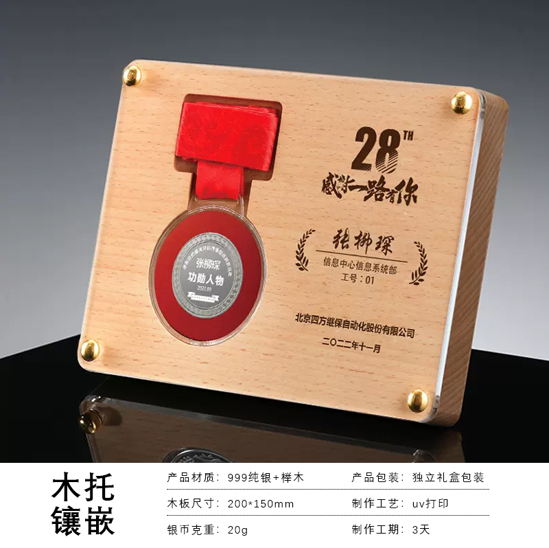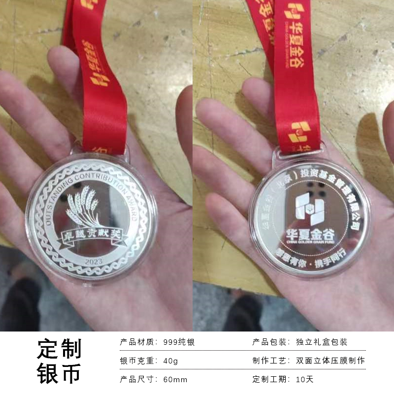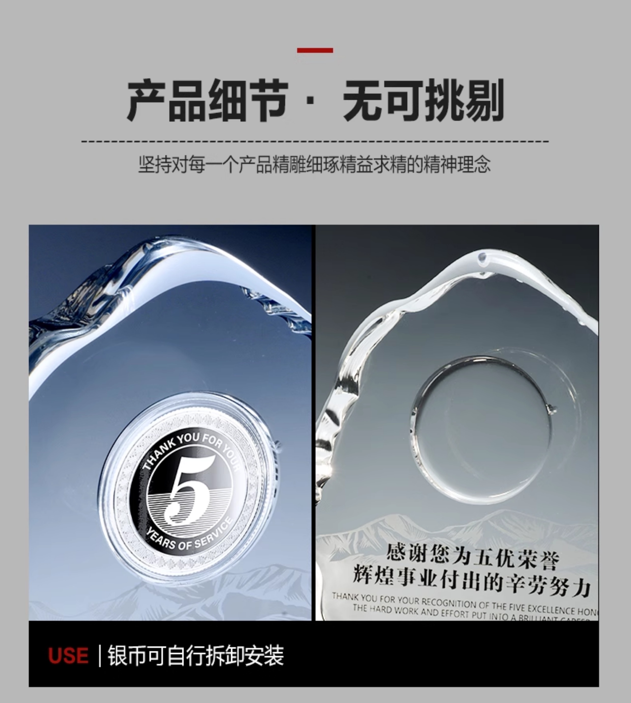 134 / 纯银纪念金币银币镶嵌高端水晶奖杯奖牌定制荣誉周年庆达人冠军