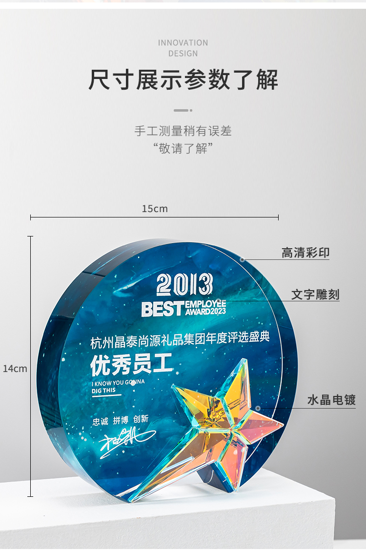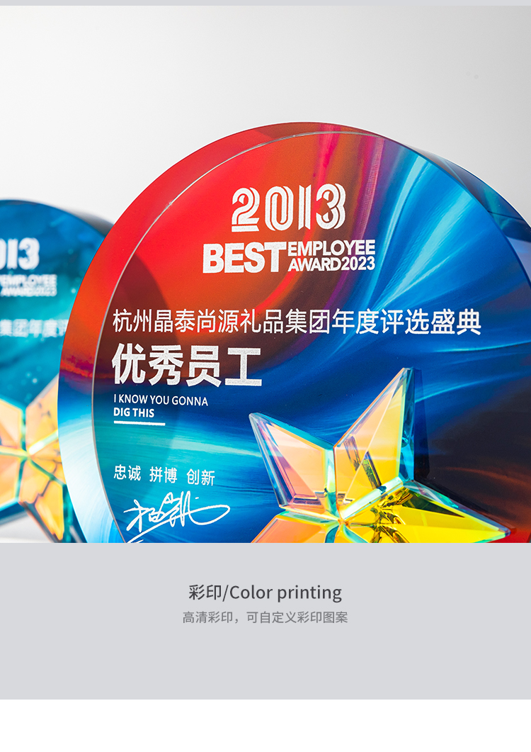 水晶奖杯定制彩印