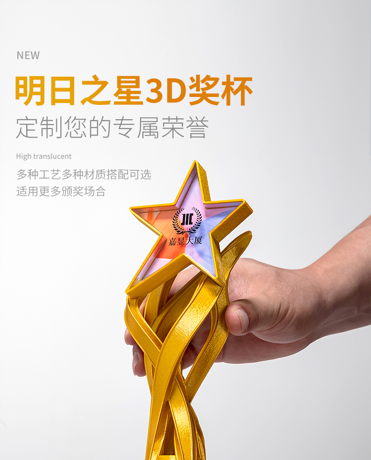 313 / 【3D打印奖杯】2025新款水晶奖杯3d打印创意星星奖杯定制奖杯牌公司定做刻字颁奖